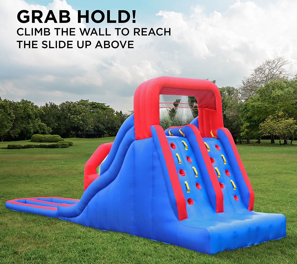 Why go to a water park when you can have one right in your own yard! Inflate this water slide with climbing wall and have hours of fun -- with your entire family -- all summer long. From Sunny & Fun.