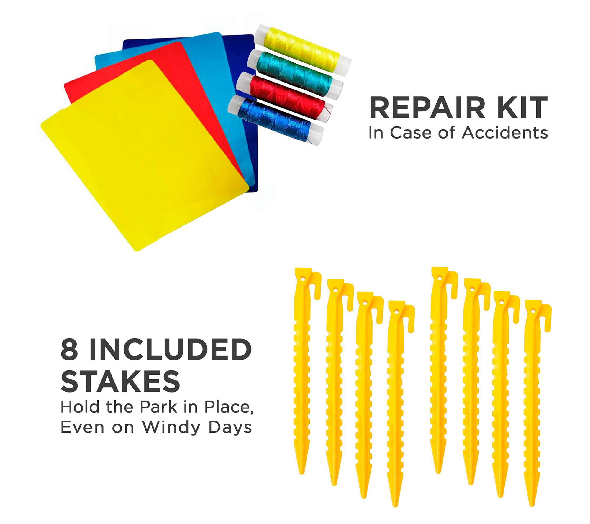 • Includes inflatable water slide park, air pump, stakes, and patch kit