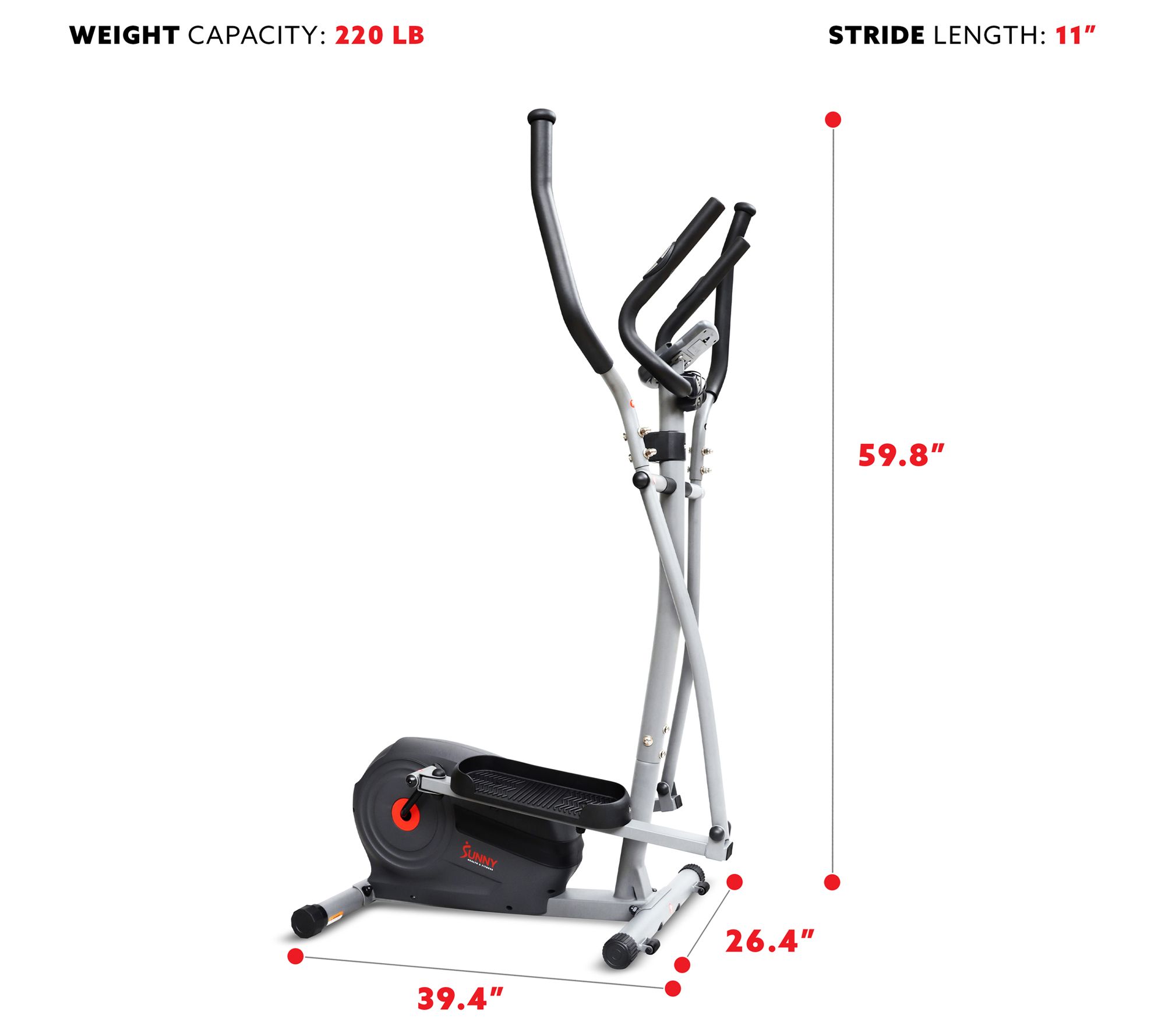 Hit your fitness stride and glide past your workout goals with this elliptical machine that features smooth motion, a digital monitor for keeping track of your routine, and adjustable magnetic resistance for the perfect level of challenge. From Sunny Health & Fitness.