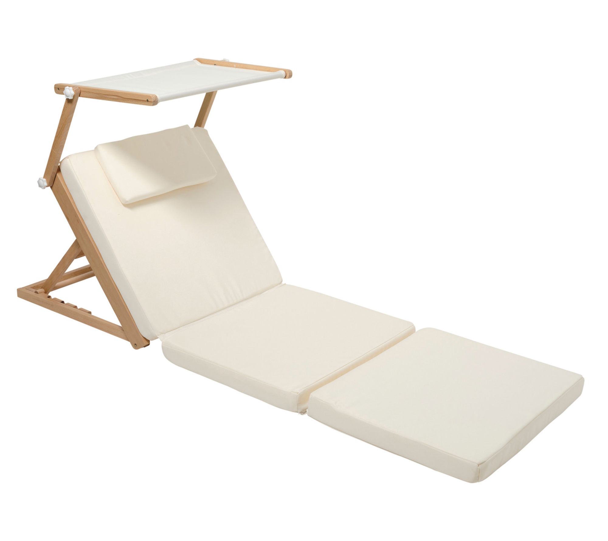 Imagine yourself lounging by the pool, the sun's warmth complemented by the gentle shade of the adjustable sunshade, as you recline back effortlessly on your daybed. Perfect for unwinding, this luxurious yet portable chaise offers four reclining settings to suit your mood. The durable wooden frame and water-resistant cover assure season-long enjoyment. When not soaking up the sun, easily fold and store it to maintain its sleek appearance. From Sunnylife.