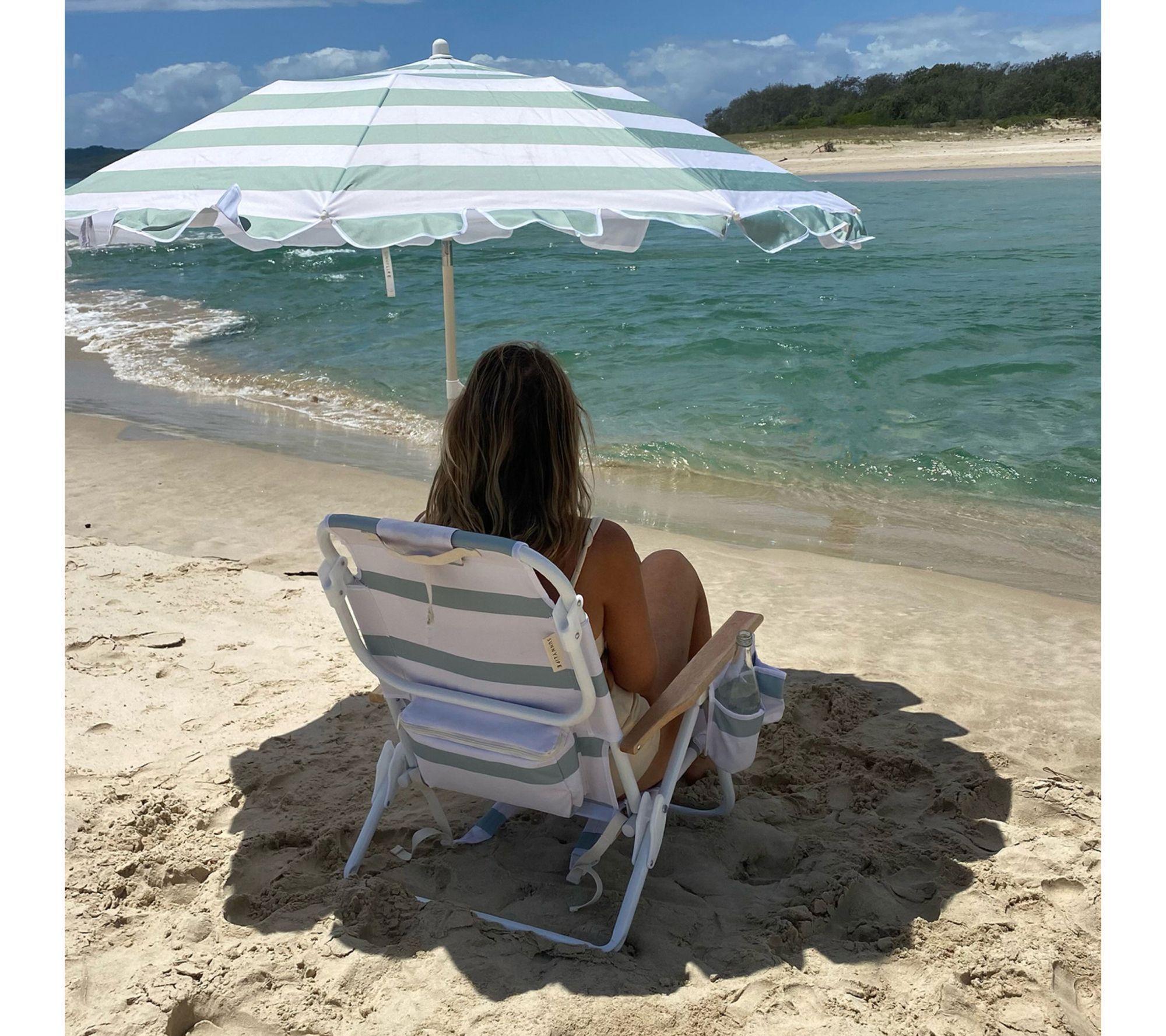 Sunnylife Compact Beach Umbrella La Palma SageStripe