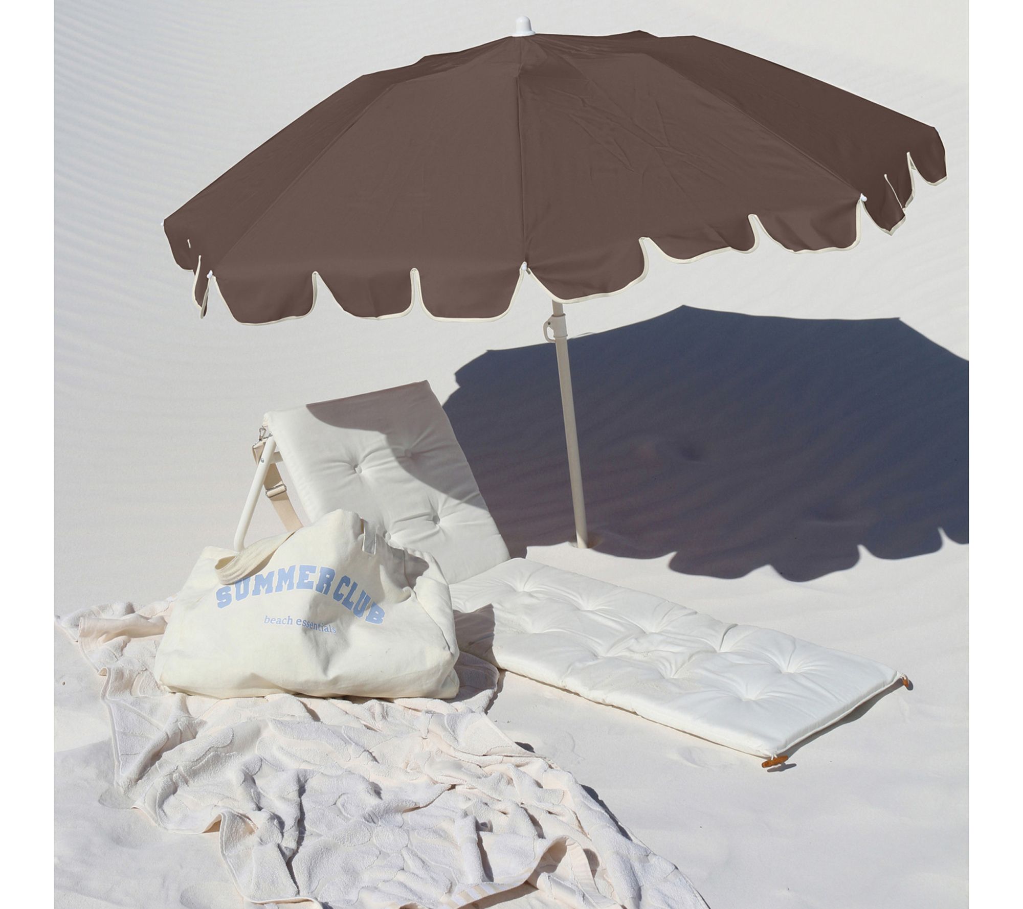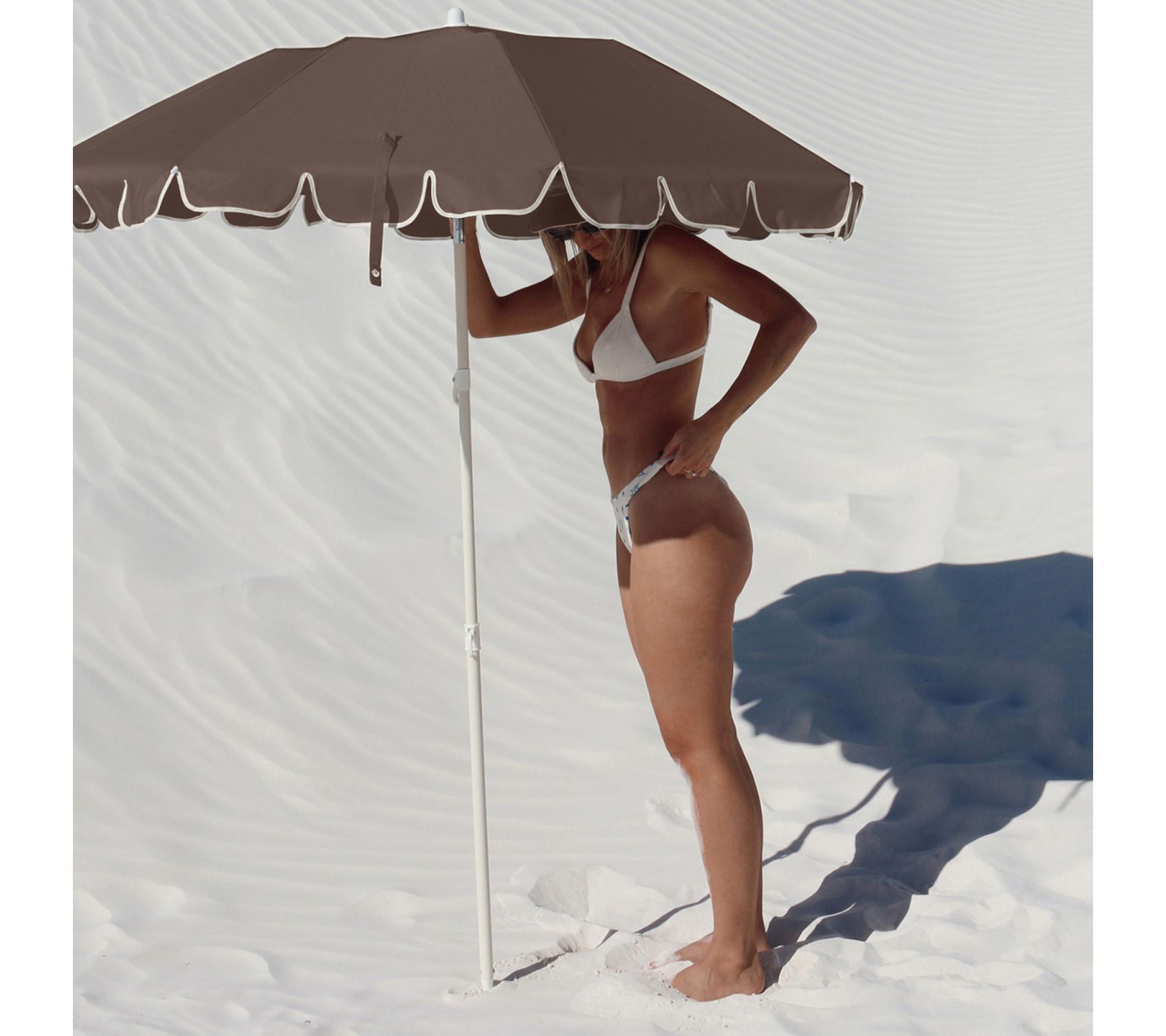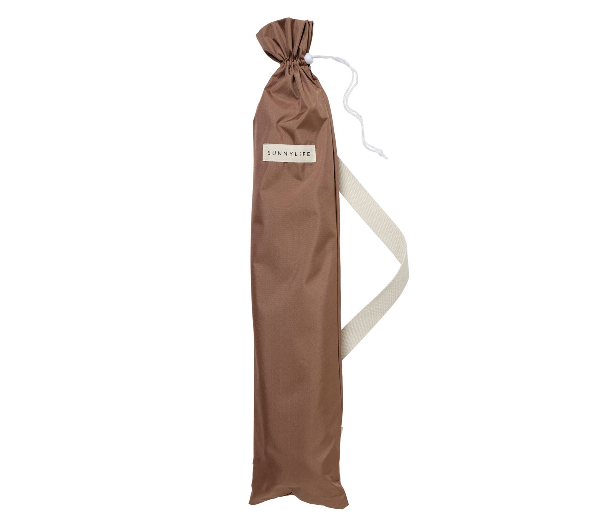 Picture yourself lounging under the vibrant Rustico Driftwood canopy while sipping your favorite iced latte, basking in the sun's warmth at your favorite beach spot. This compact and easy-to-carry beach umbrella offers ample shade and adjustable sun coverage, allowing you and a friend to relax in comfort all day long. With its durable fabric and convenient carry bag, it's the ultimate companion for beach lovers seeking style and function. Enjoy laid-back days by the ocean, one carefree moment at a time. From Sunnylife.