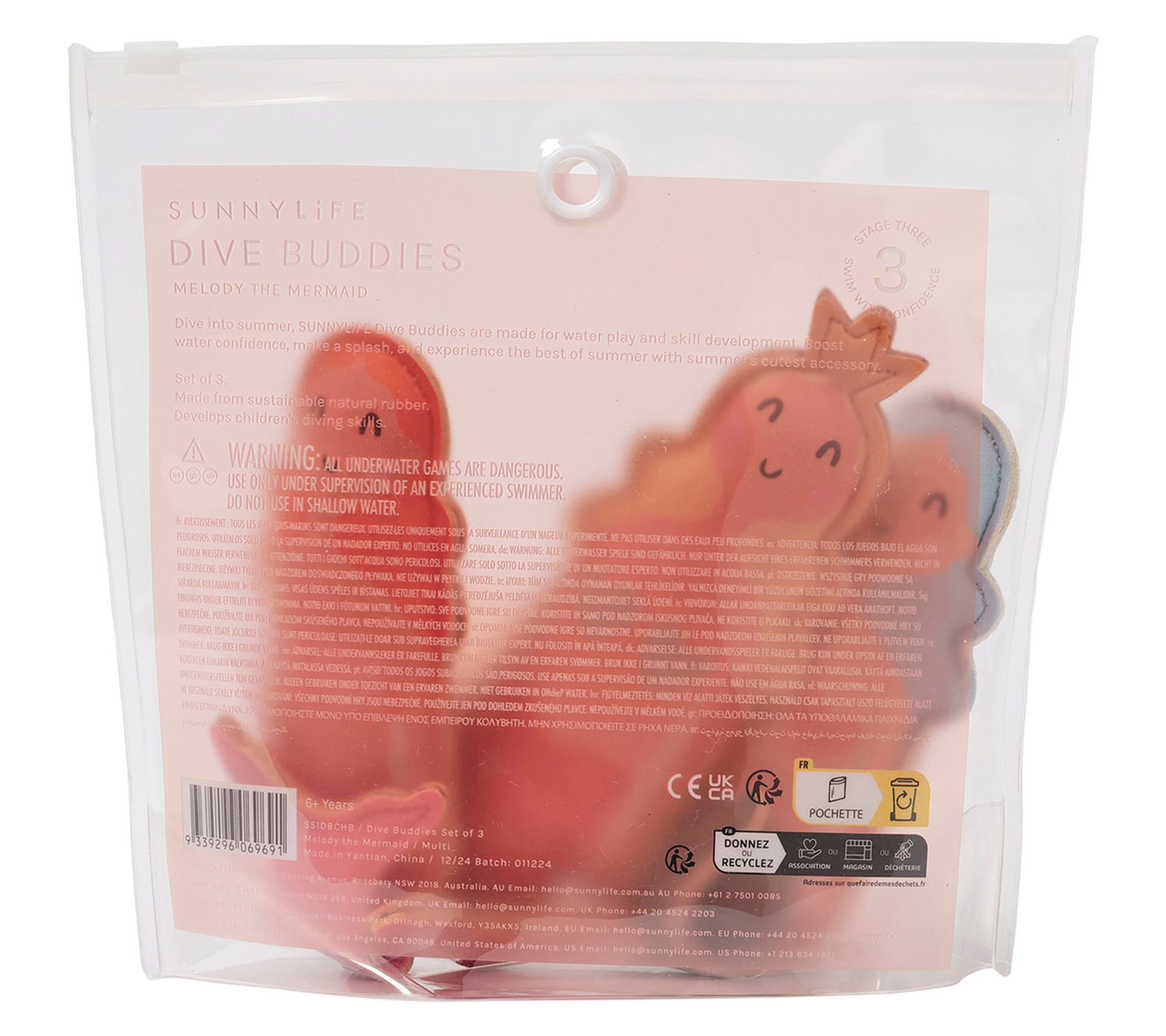 • Includes three mermaid dive buddies
