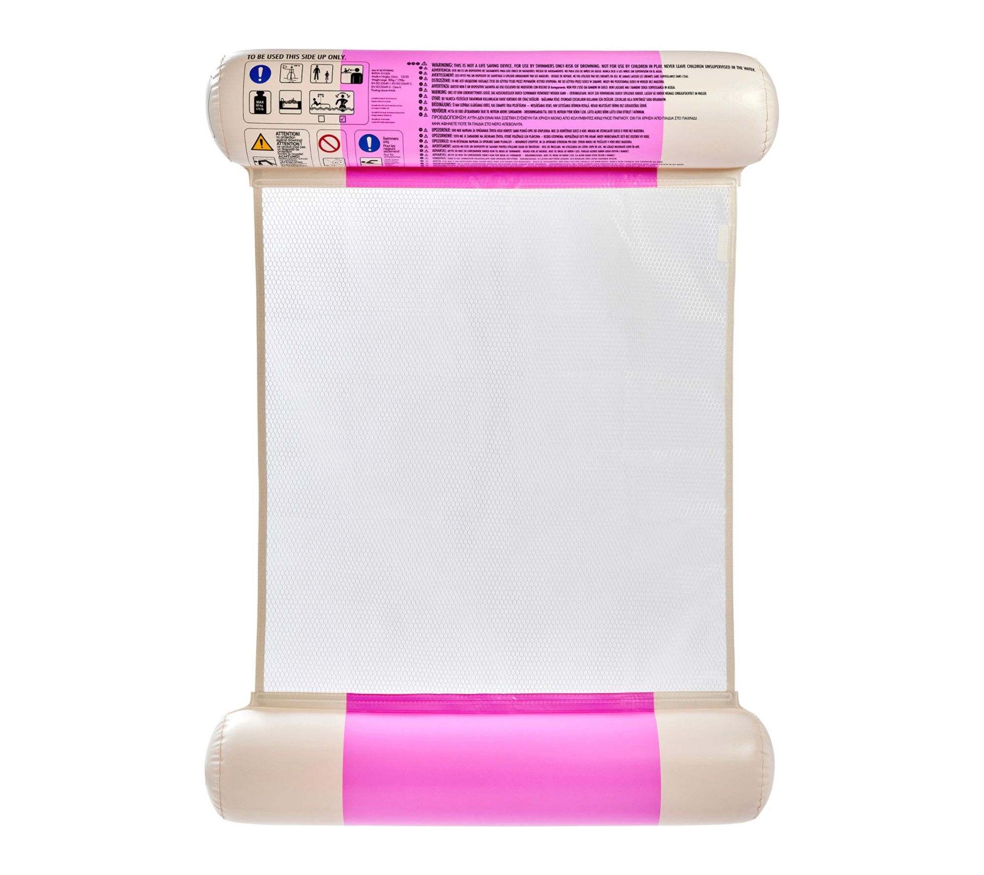 Soak up the sunshine as you unwind atop this pool float hammock, designed to double as a comfy seat or a full lounger. The vibrant magenta and cream hues add festive flair to pool parties or backyard escapes, while the net center keeps you cool as you relax and drift. From Sunnylife.