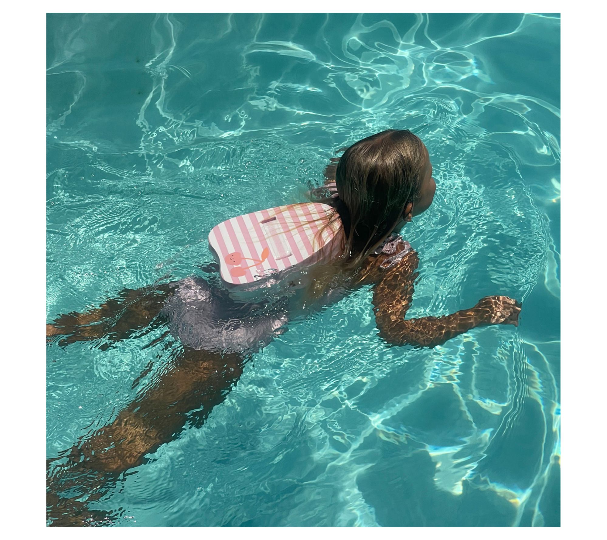Splashy days at the pool or beach come alive with this adjustable foam float to help kids feel confident as they develop their swimming skills. Removable layers let you adjust buoyancy as they grow, while the secure strap and double-action buckle keep swim time worry-free. It's a playful way to encourage water fun all summer long. From Sunnylife.