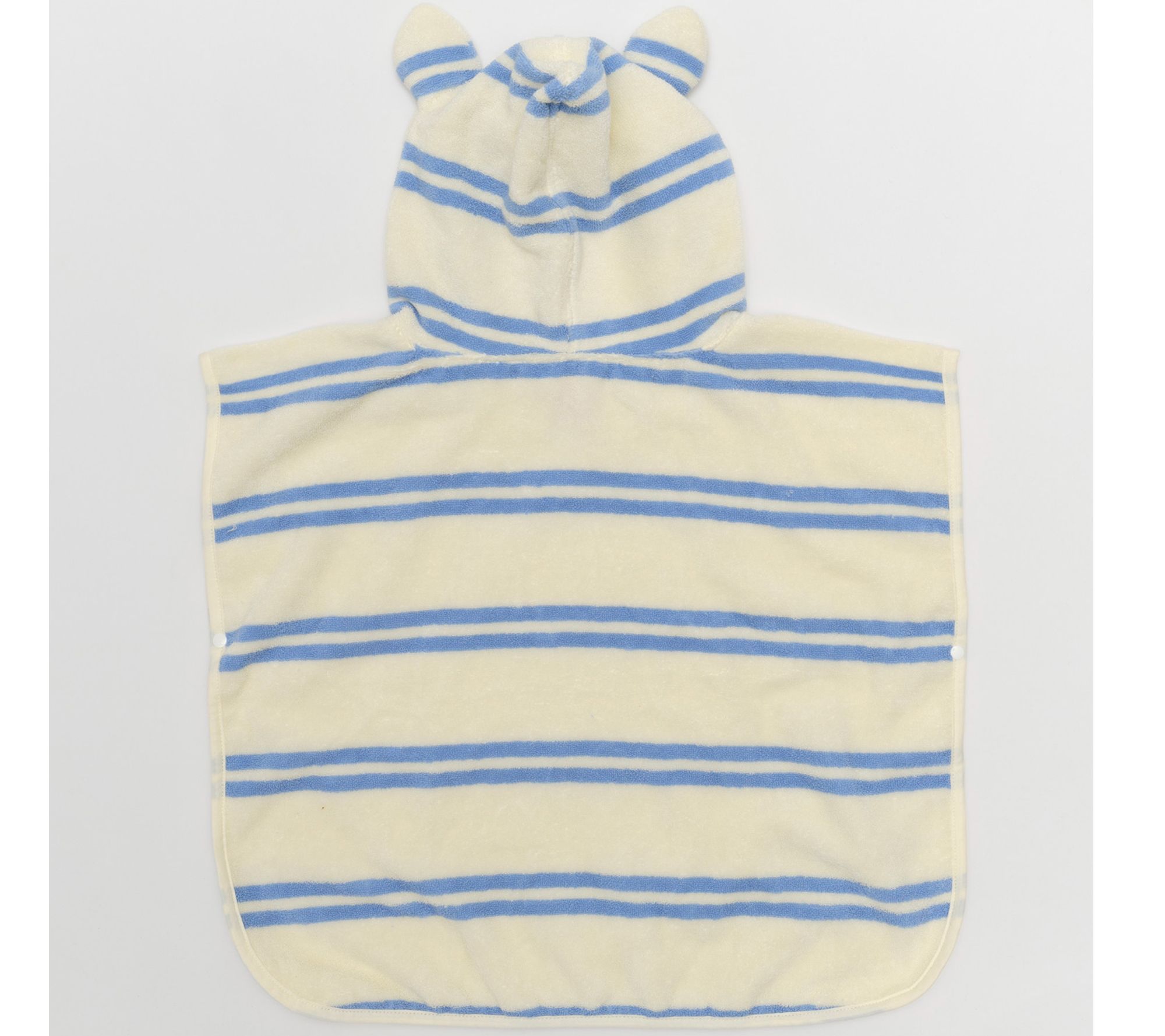 • Features playful seagull character with ears on hood and blue stripe design; snaps on sides