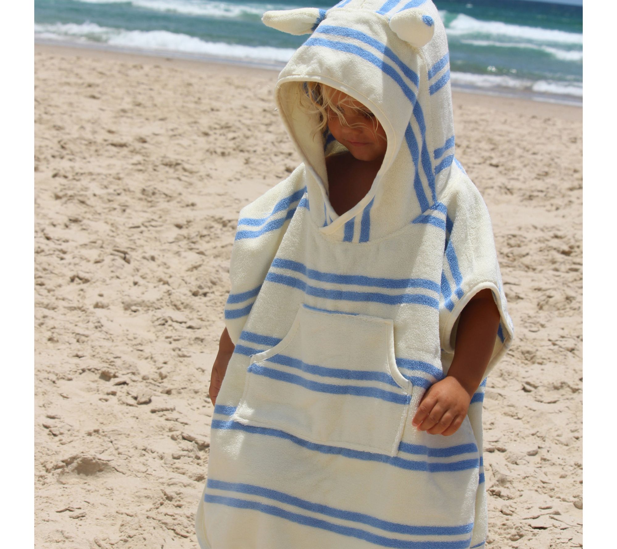 Make every splash and bath time more joyful with the Kids Character Hooded Towel. Soaked from the pool or winding down after a bubbly bath, little ones love wrapping up in soft, absorbent cotton while a playful seagull hood and button-up sides make drying off an adventure. From SUNNYLiFE.