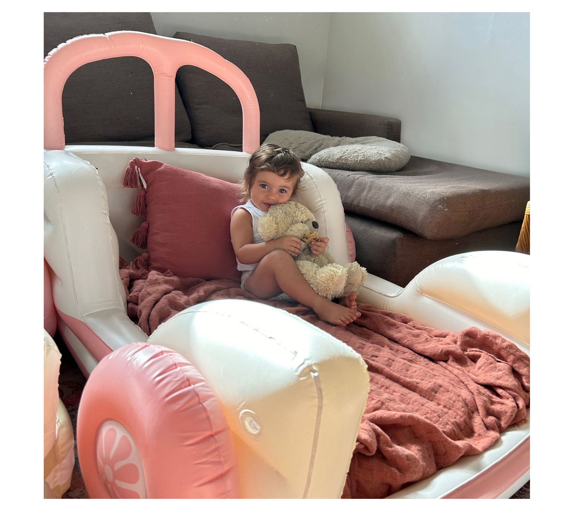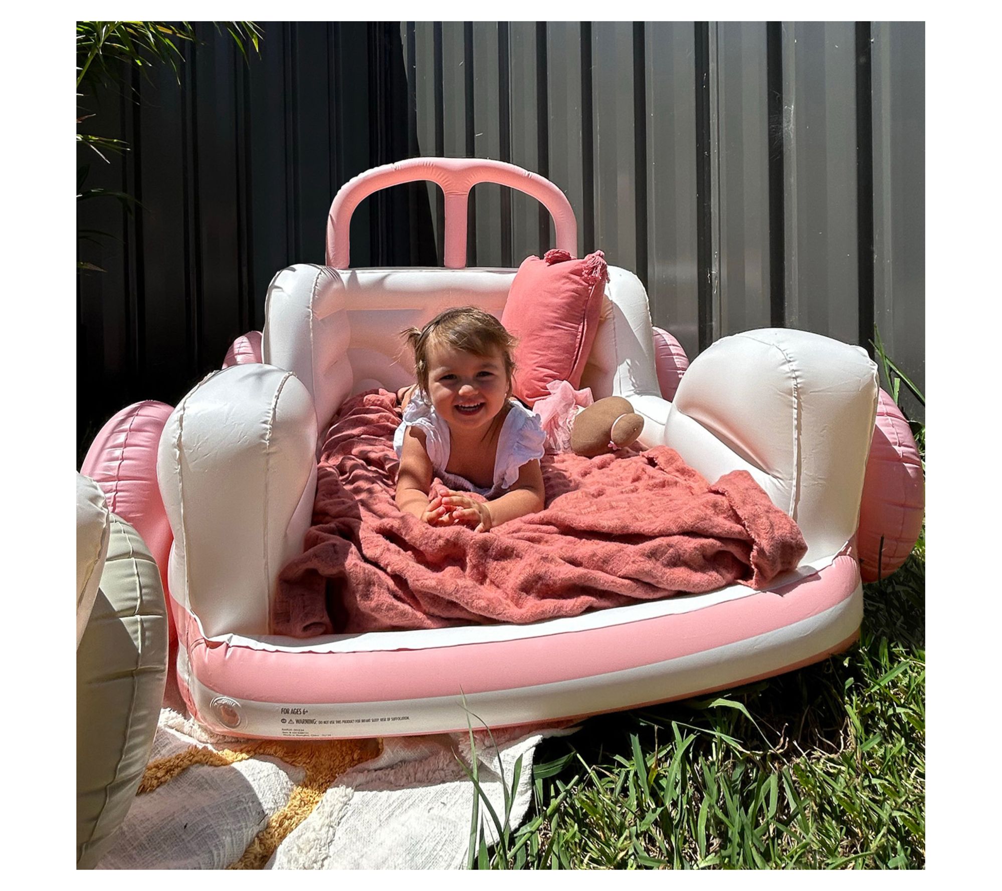 Sleepovers just got a playful upgrade with an inflatable bed shaped like a summer van, designed to delight little adventurers. It's more than just a bed; it's a whimsical journey that transforms any room into a road trip adventure. Featuring a soft, flocked mattress for enhanced comfort and a robust build, this bed offers a cozy night's sleep filled with dreams of exploration. Perfect for creating memories, whether indoors or out, this sleepover companion is all set to fuel fun and imagination. From Sunnylife.