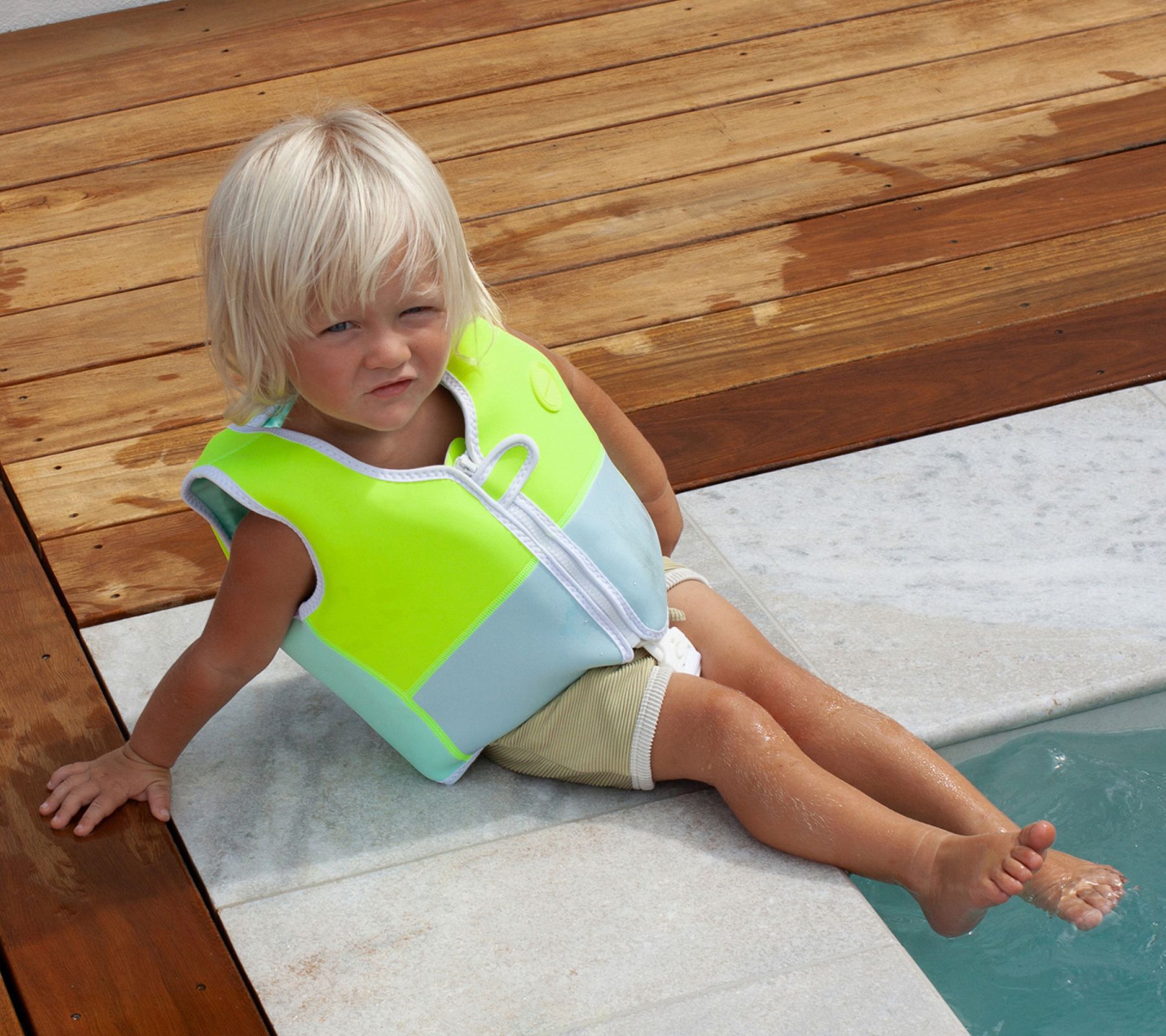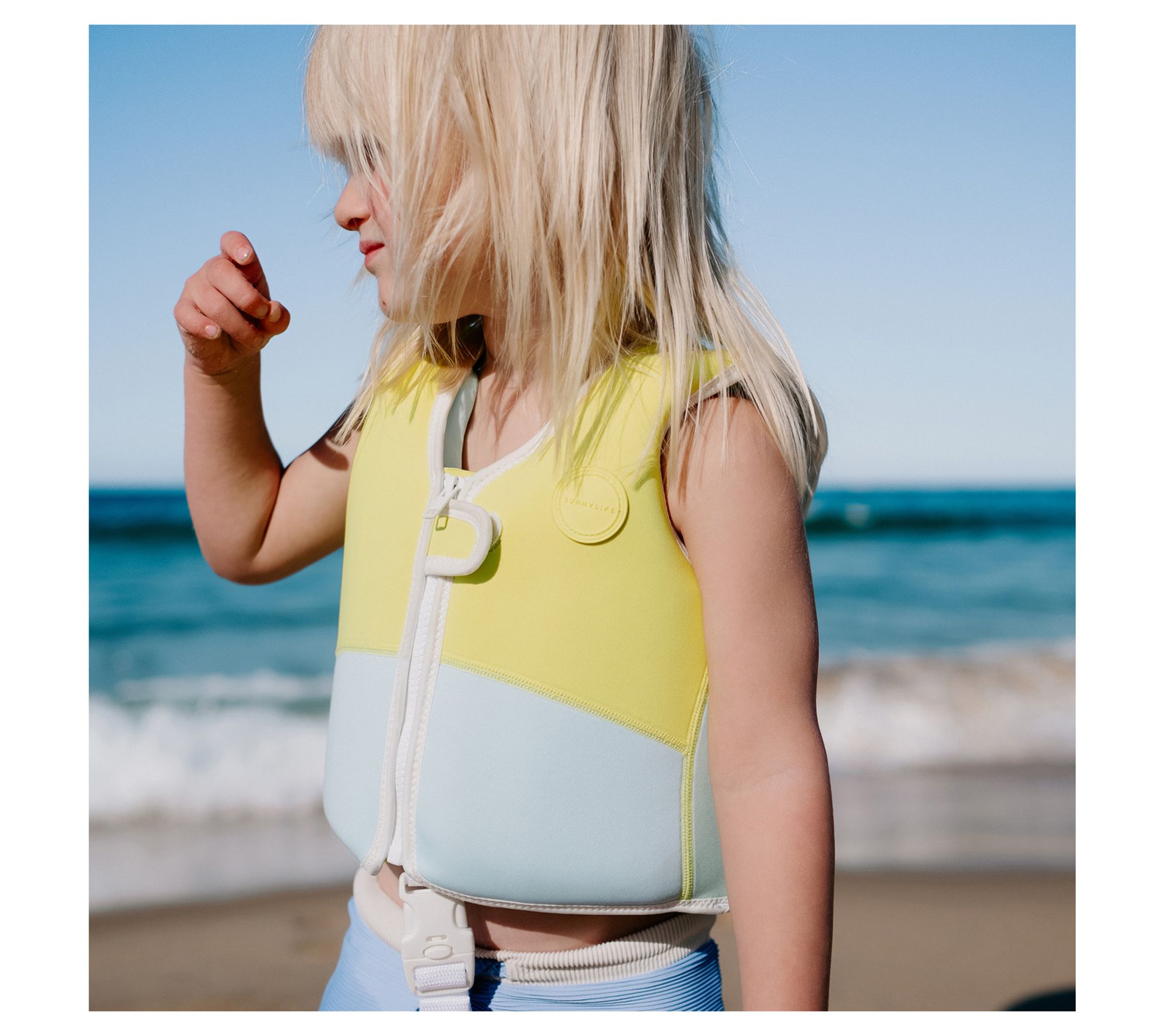 When it's time for your little shark to explore the water, this swim vest brings fun to the adventure. Splashing at the beach or the pool takes on new excitement with Salty the Shark's fin adding whimsy to every paddle. This vest features a snug fit with its adjustable anti-rise straps and neoprene comfort guard, letting children focus on building their swimming confidence without irritation. With easy-on and zip features, this charming vest becomes their ticket to aquatic playtime. From Sunnylife.