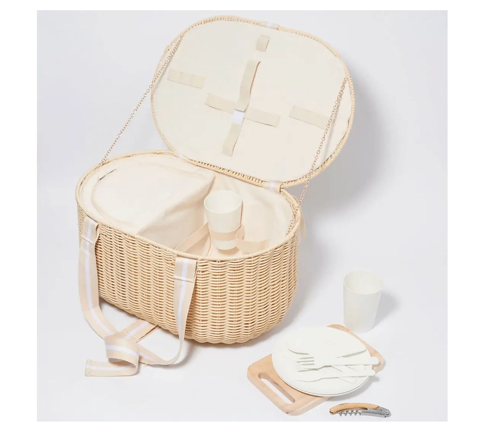 Get your crew together and make the most of sunny days with a roomy basket that holds everything you need for a leisurely picnic. Thanks to an insulated compartment with zip closure, snacks and drinks stay chilled while you lounge and enjoy the fresh air. Plates, cups, and cutlery tuck neatly inside, making it effortless to pack up and go when your day winds down. From Sunnylife.