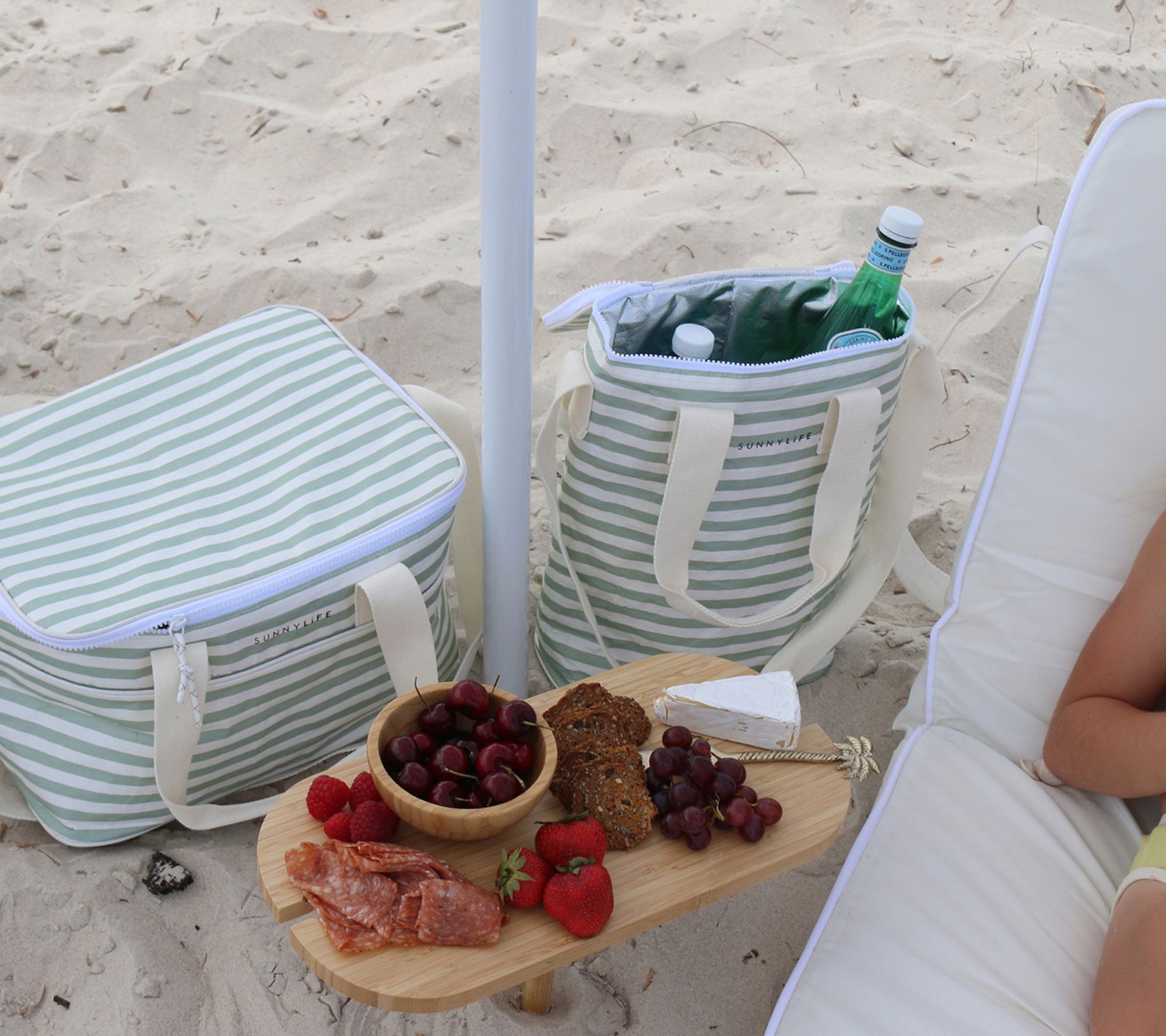 Pack your favorite drinks and head outside with this cooler drinks bag that keeps everything chilled for up to four hours. With room for two bottles of wine or champagne, an insulated interior, and freezable gel ice pack, it's a go-to for sunny picnics and outdoor celebrations. Convenient cotton handles and a shoulder strap make carrying a breeze. From Sunnylife.