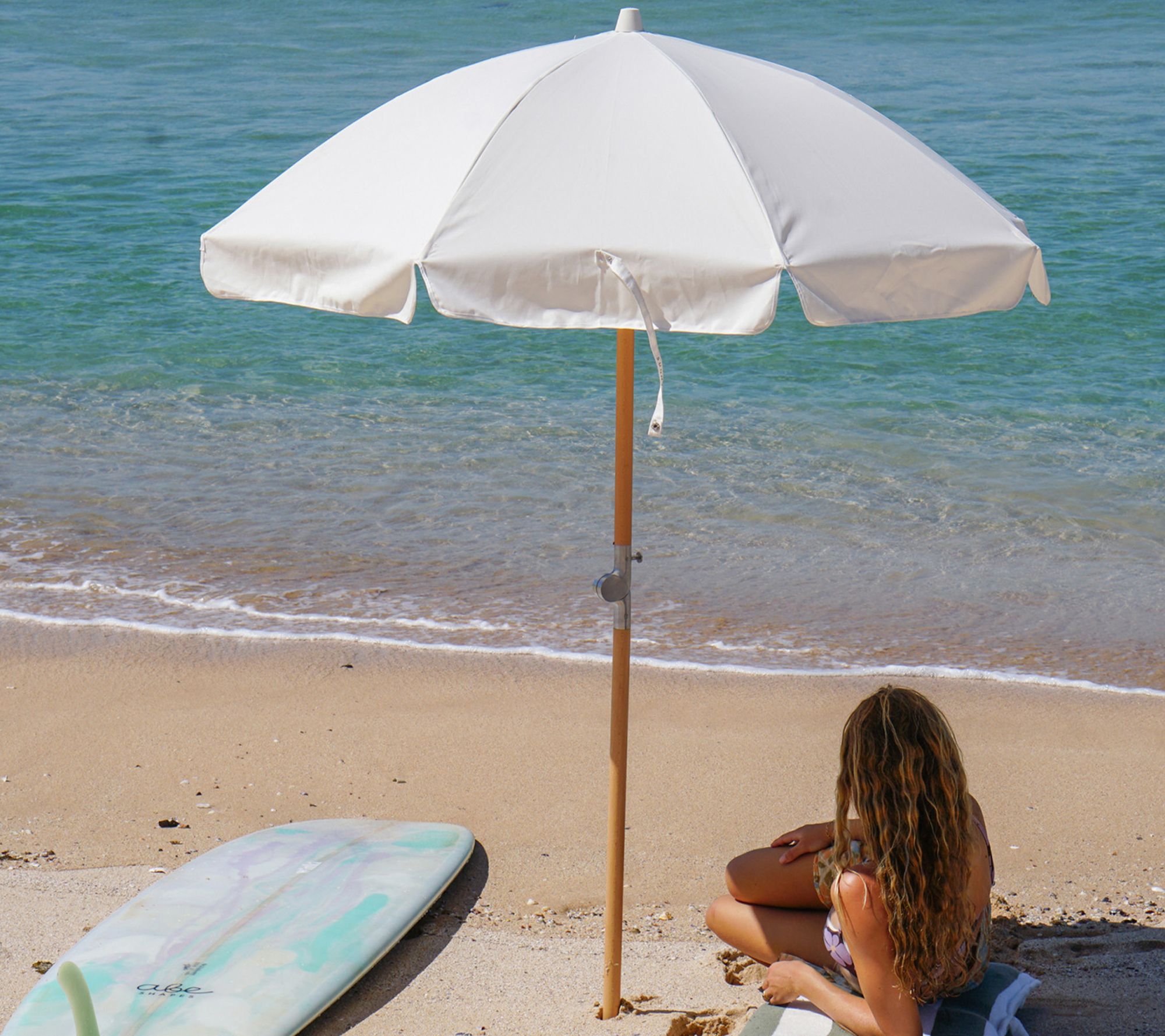 Create your own shady retreat right on the sand with this beach umbrella, offering stylish sun protection for two as you relax by the waves. Its adjustable tilt feature, compact fold-down design, and included carry bag with shoulder strap make setting up and carrying effortless, so you can focus on enjoying your beach day. From Sunnylife.
