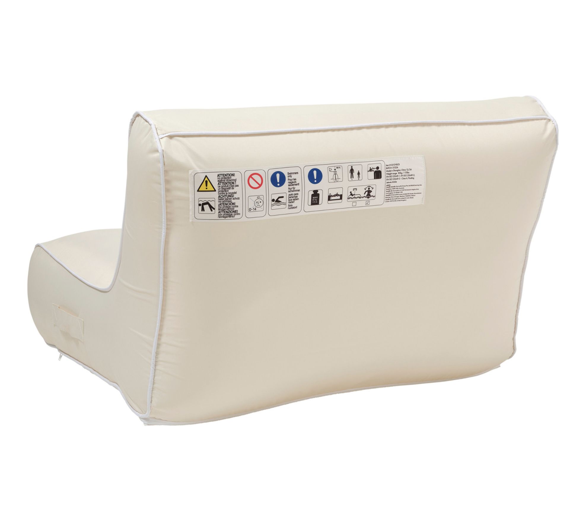 Imagine yourself drifting effortlessly on the water, catching rays in ultimate comfort with this elegant floating chair. Crafted with a coated fabric cover designed for outdoor resilience, it ensures you stay luxuriously relaxed as you float your cares away. The mesh underside facilitates easy drainage and speedy drying, while the durable inflatable inner provides perfect support for leisurely days. Enjoy sunny afternoons with this chic accessory, ideal for poolside retreats or beach days. From Sunnylife.
