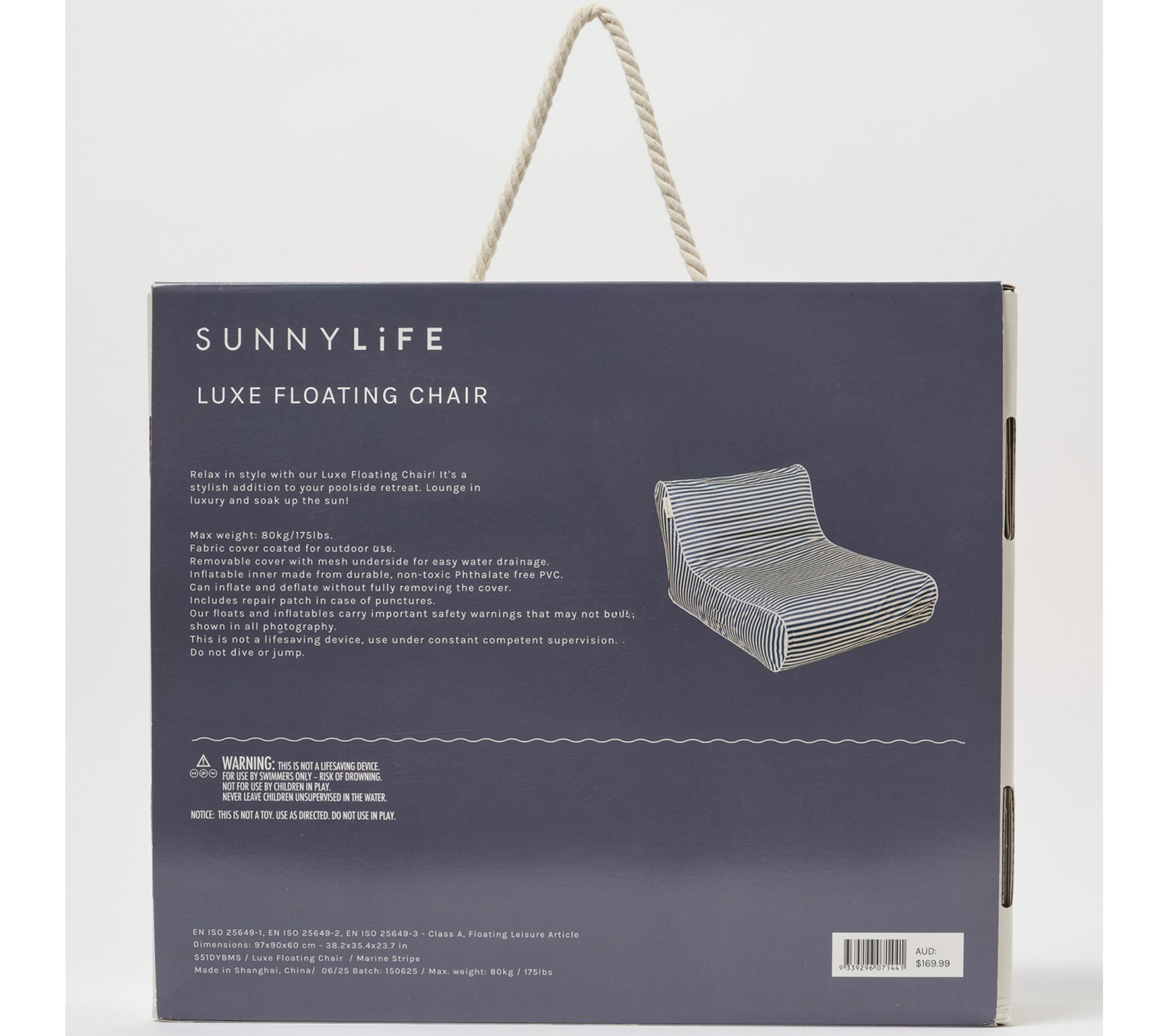 Soak up the sun in total comfort with this pool float, designed for relaxing days at the water's edge. The removable cover and mesh underside make it a breeze to drain and dry after each use, while the marine navy stripe brings an elegant, coastal look to your poolside retreat. From Sunnylife.