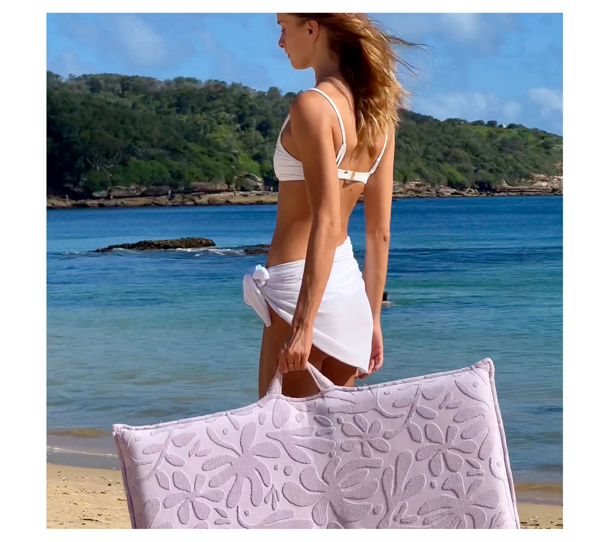 Recline in comfort with the Sunnylife Rio Sun Pastel Lila Luxe Folding Seat. This ultimate outdoor seat offers six adjustable reclining settings for sitting or lying back, and its premium jacquard terry toweling cover is both removable and machine washable. The tropical foliage print and hazy lilac hue will have you radiating the carefree spirit of summer. From Sunnylife.