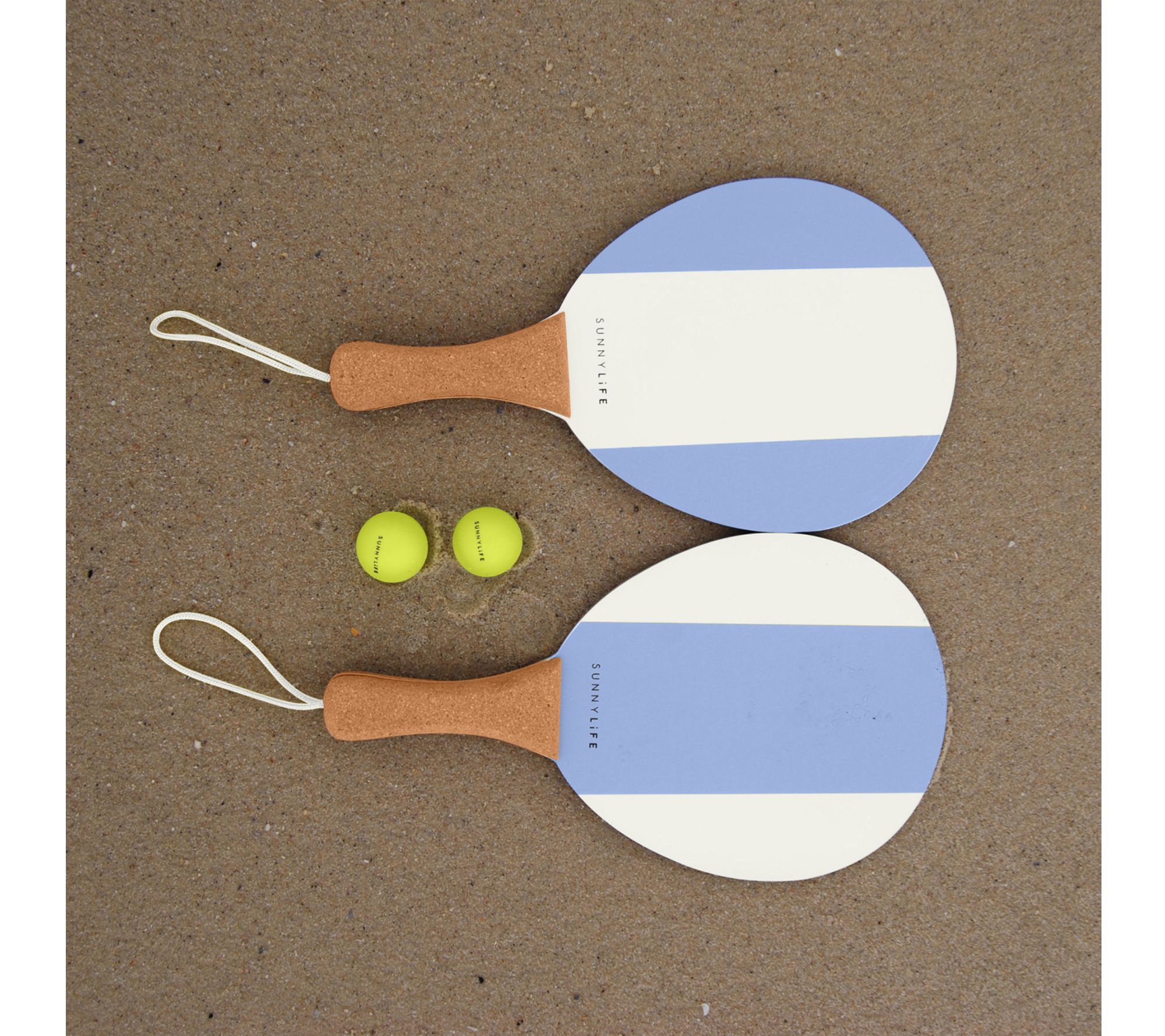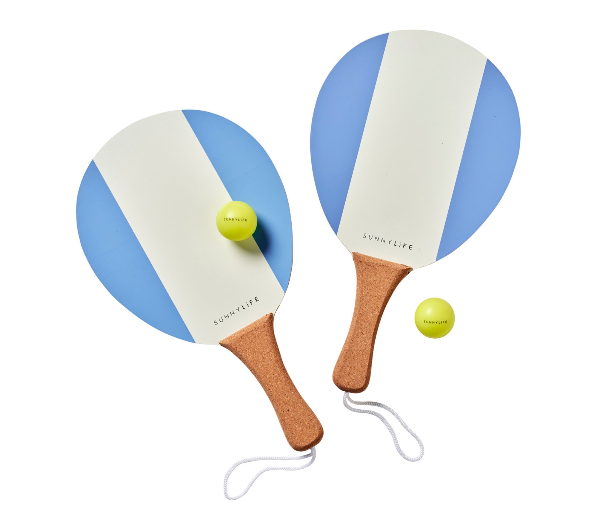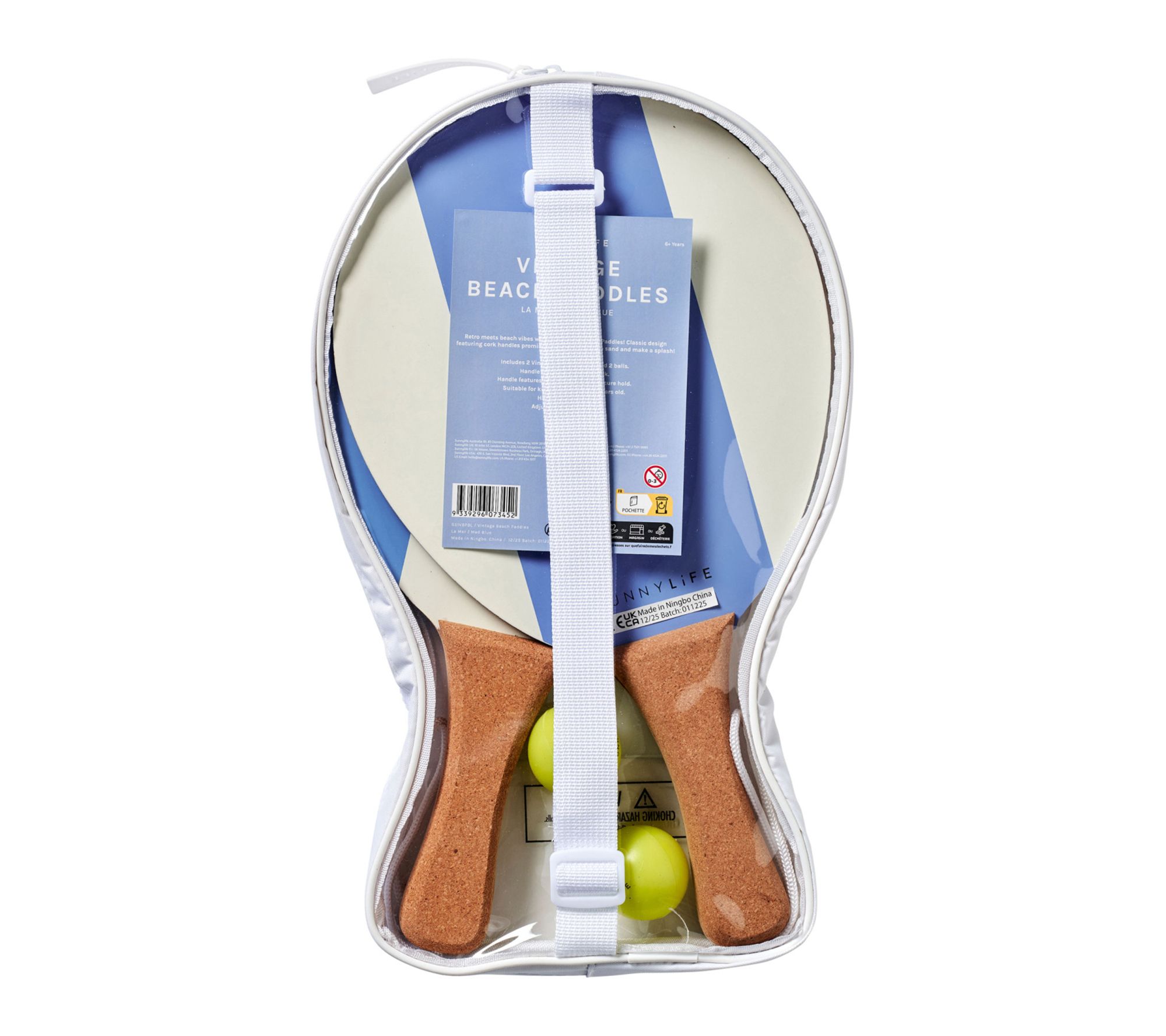 Soak up the sun and bring a splash of fun to your next trip with these retro-inspired beach paddles. Whether you're volleying with friends or sharing laughs with family at the shore, the cork handles provide a comfortable grip while the included balls and convenient case help you stay ready for quick games. From SUNNYLiFE.
