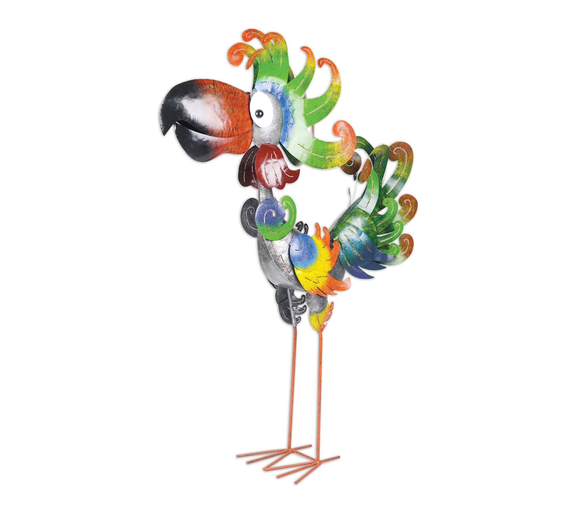 Meet Loopy Lenny! Brighten your garden or patio with this lively metal rooster lawn ornament, featuring vibrant plumes and a whimsical bobbling head. The three-dimensional design stands freely, and the wings open up to hold a light for nighttime ambiance, a secret key, or a small plant. From Sunset Vista Designs.