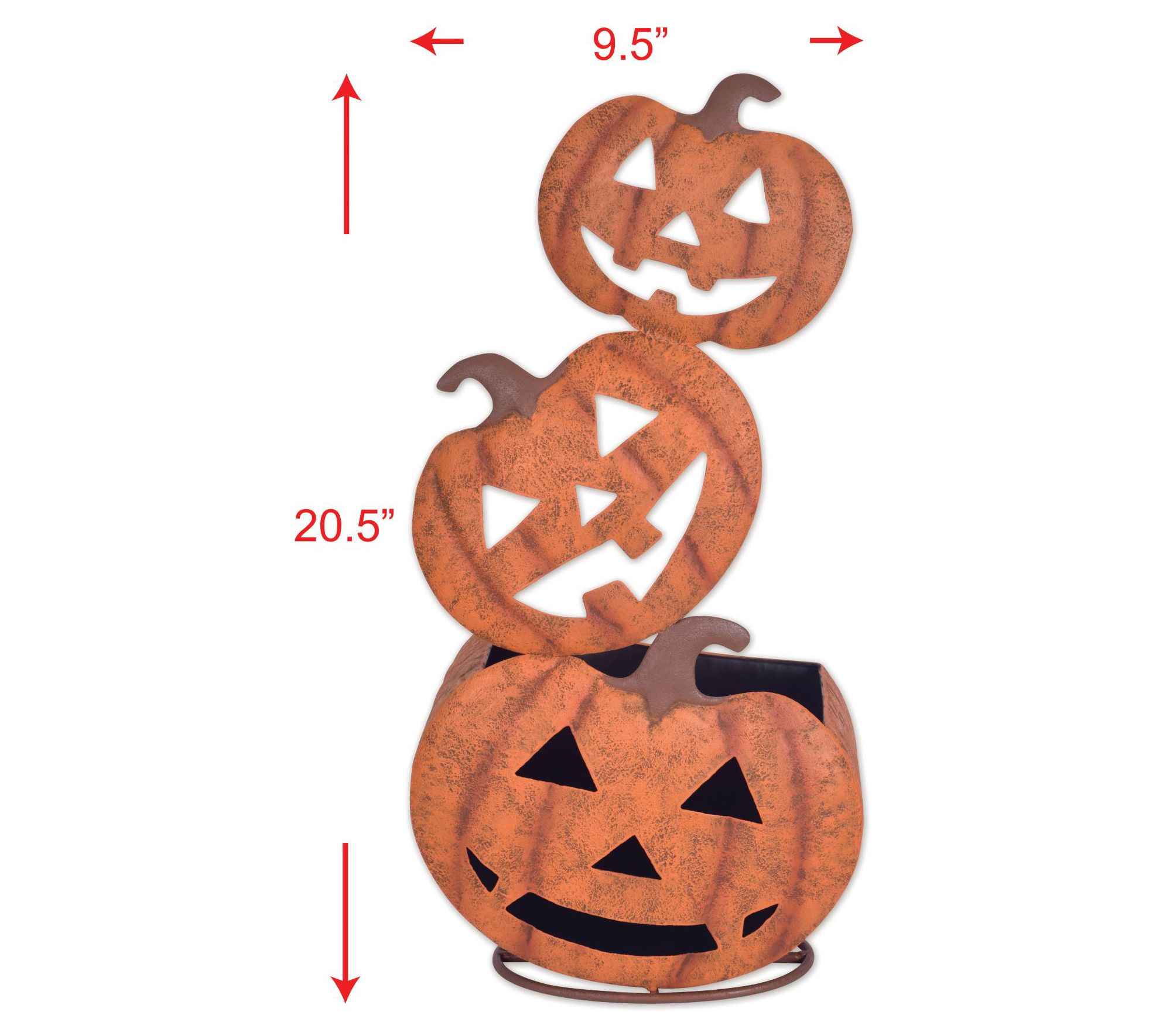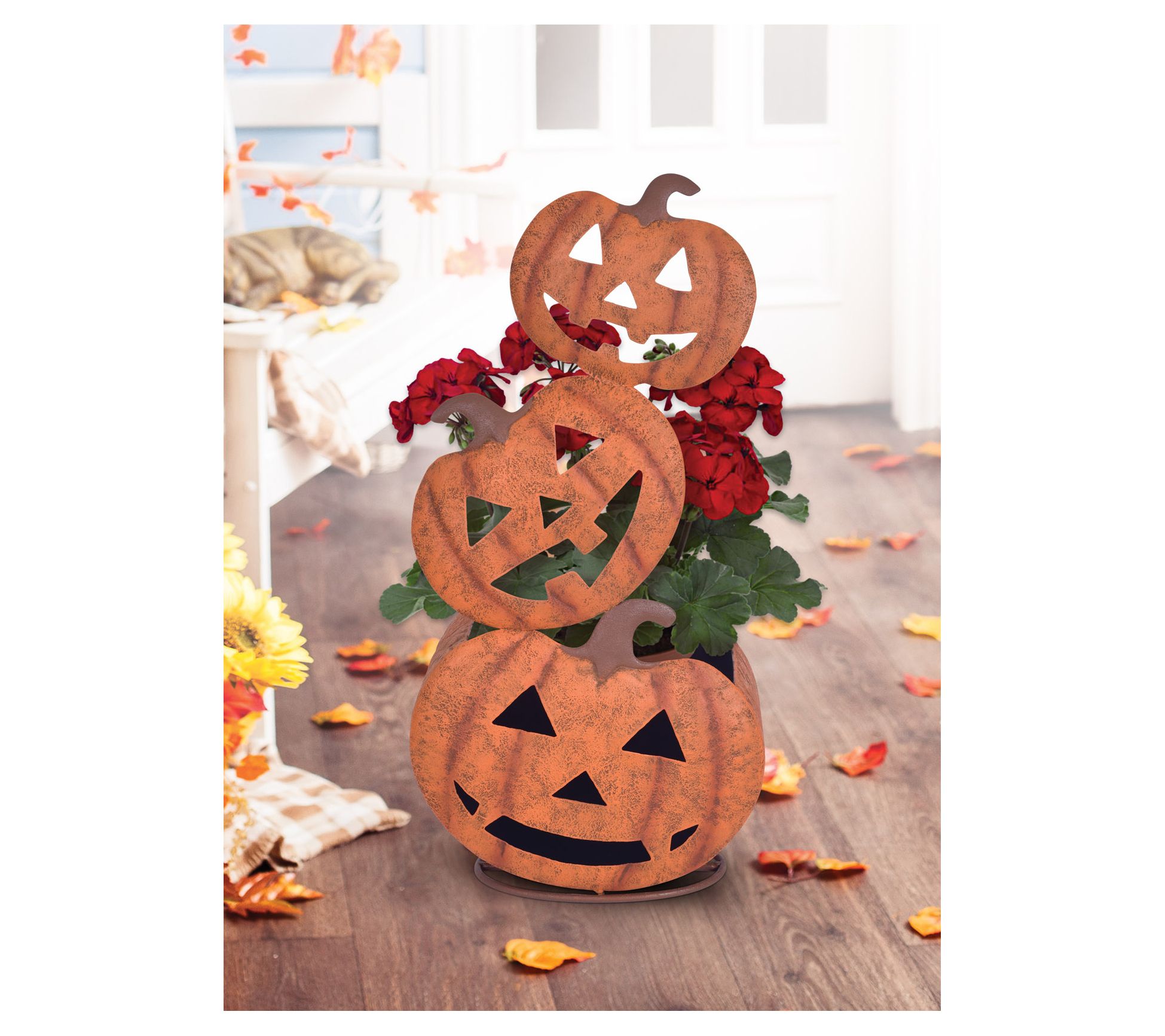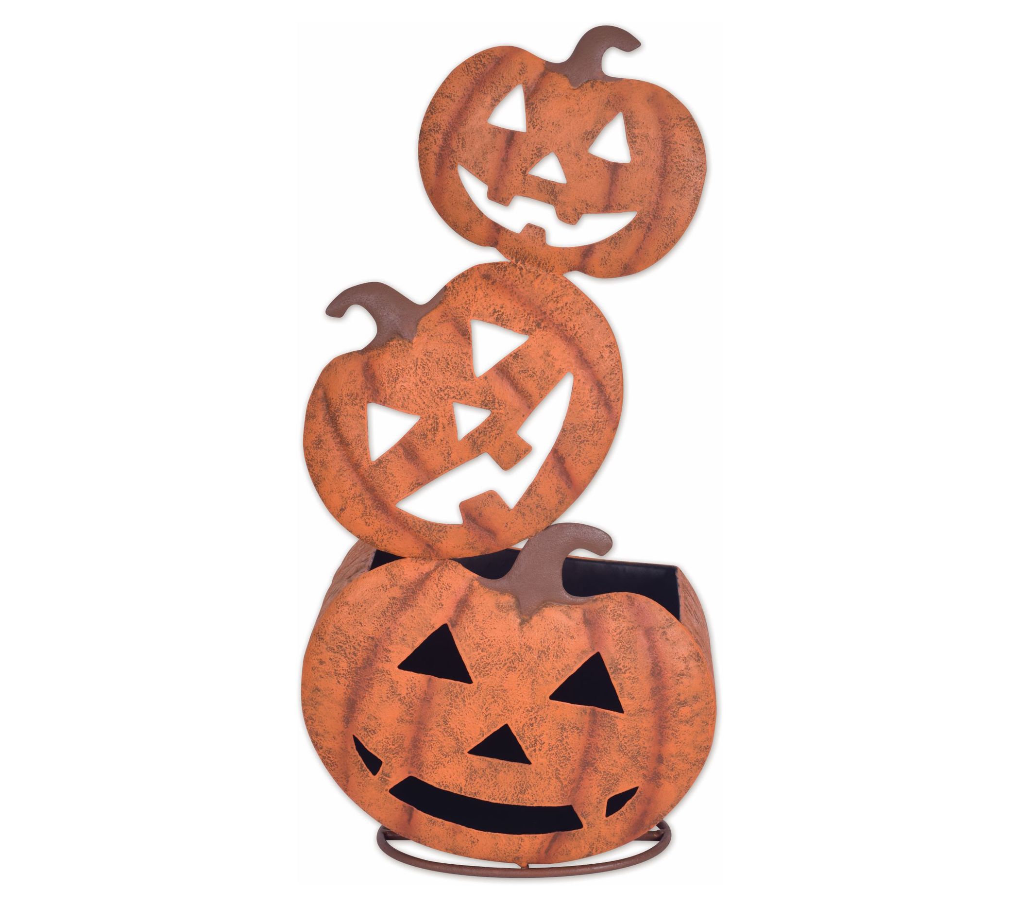 Add a touch of fall to your home with this delightful pumpkin planter. Perfect for showcasing autumn flora or filling with Halloween treats, this freestanding metal planter brings seasonal charm to your display. From Sunset Vista Designs.