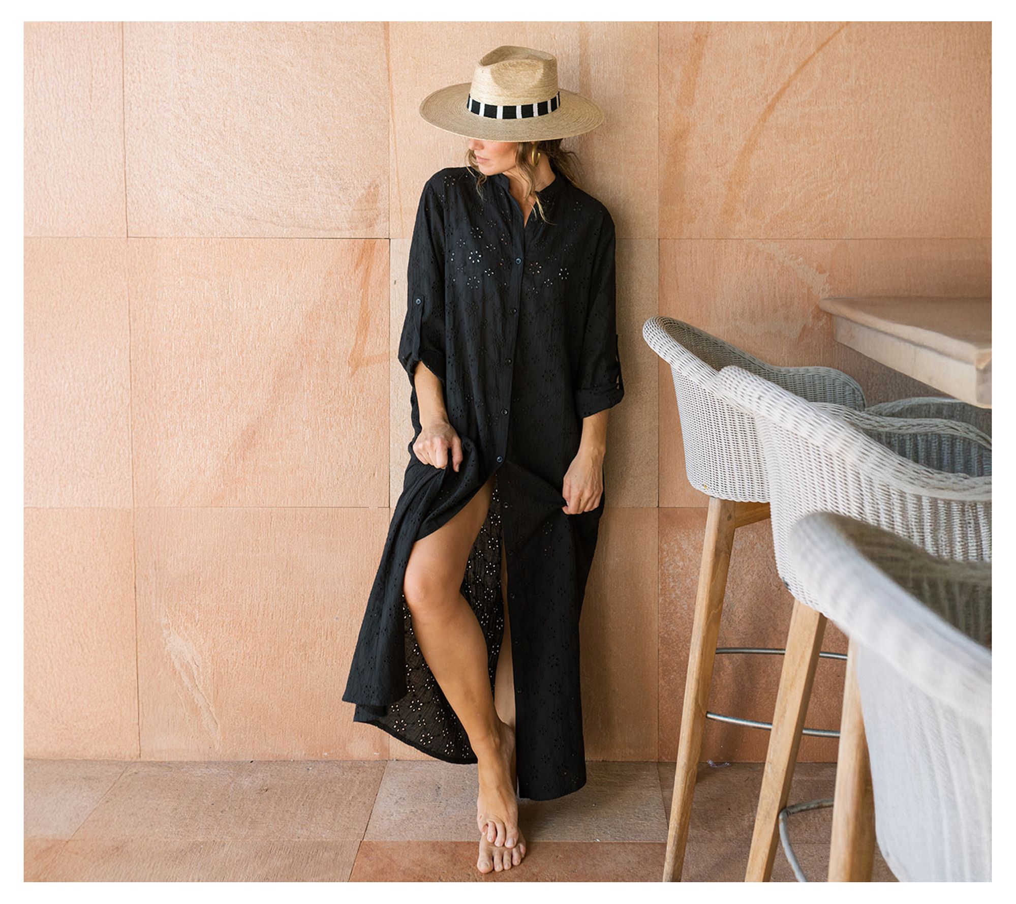 Get ready for a spring or summer day in this relaxed-fit maxi dress. Made from 100% cotton with textured eyelet fabric, this long-sleeve dress features a classic button-down collar and comes with a slip for added coverage. From Sunshine Tienda.