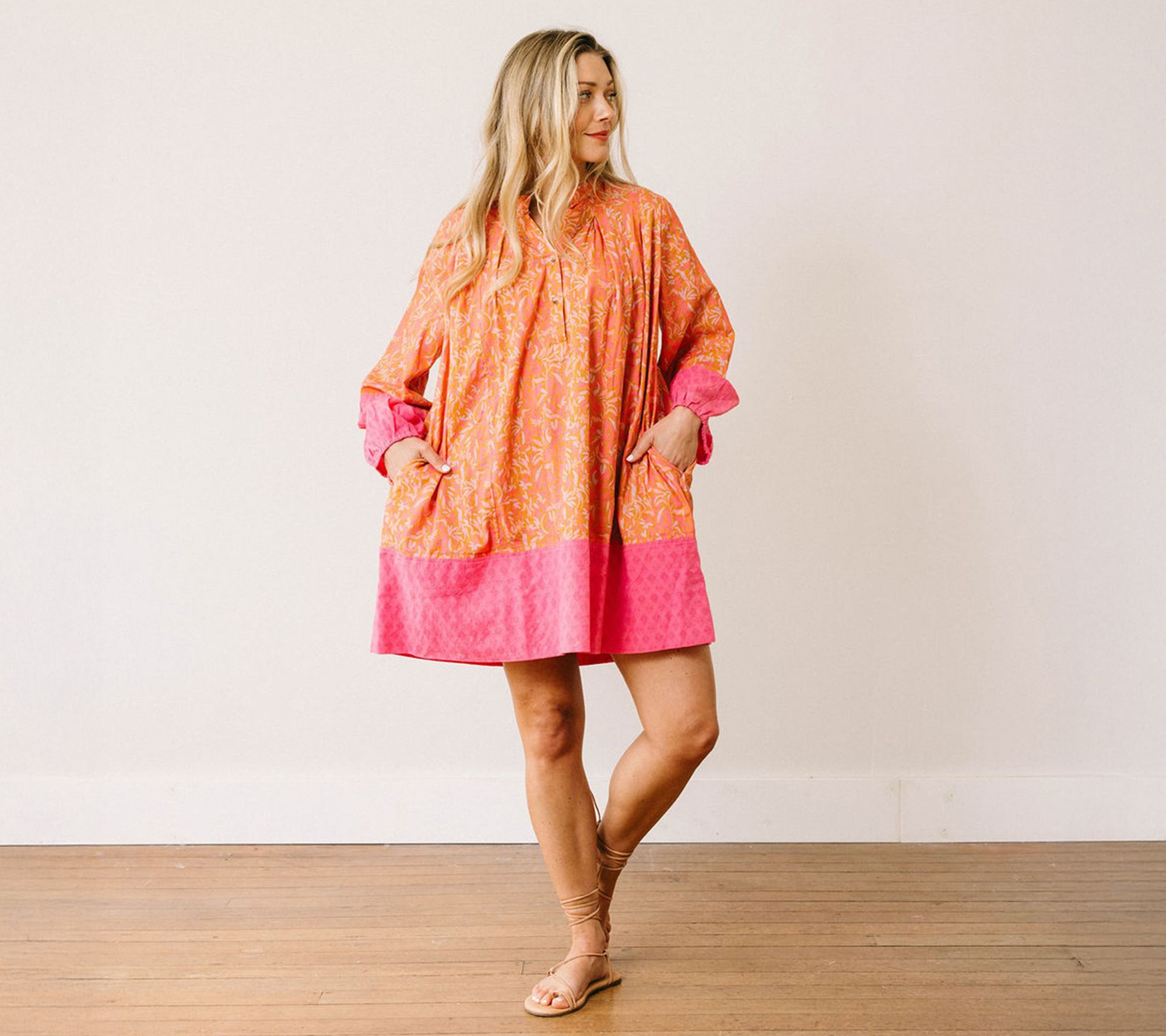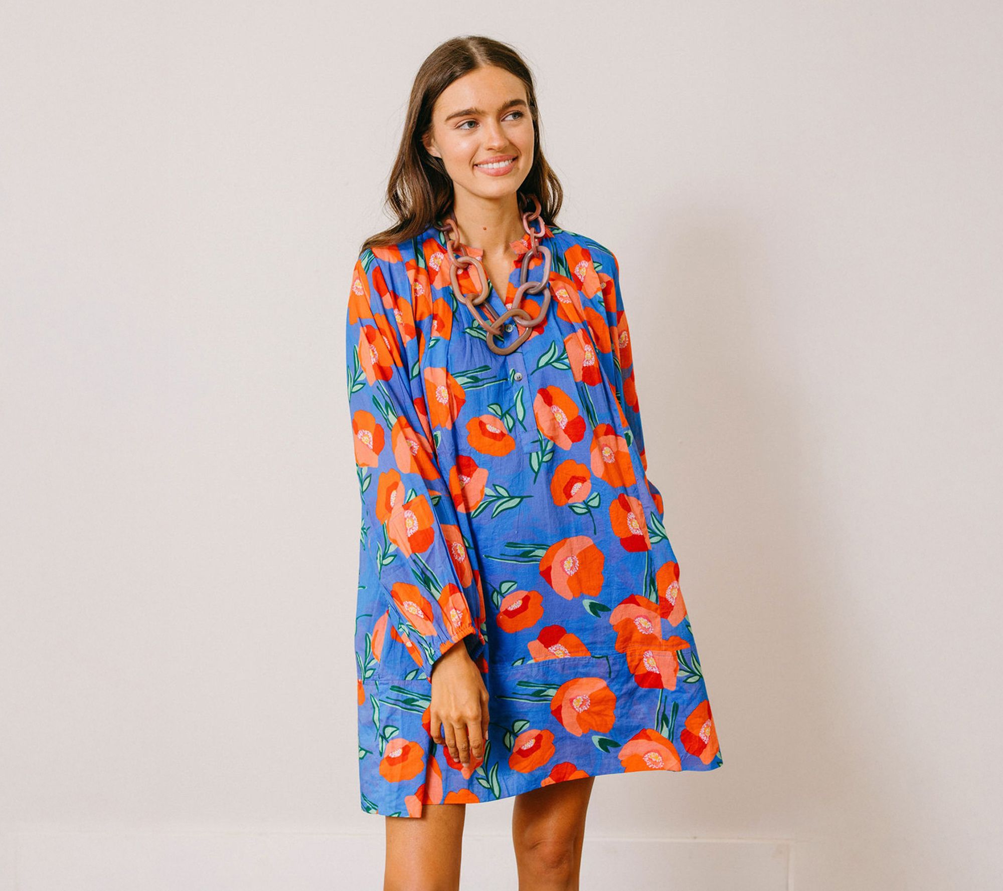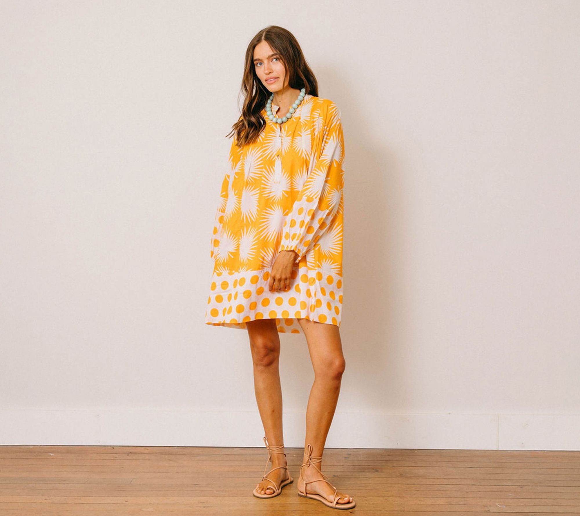 Step out in effortless style and comfort with this women's tunic dress, crafted from 100% lightweight woven cotton that's perfect for spring and summer. This relaxed-fit, shift-style dress features a flattering above-the-knee length and a classic V-neckline. From Sunshine Tienda.