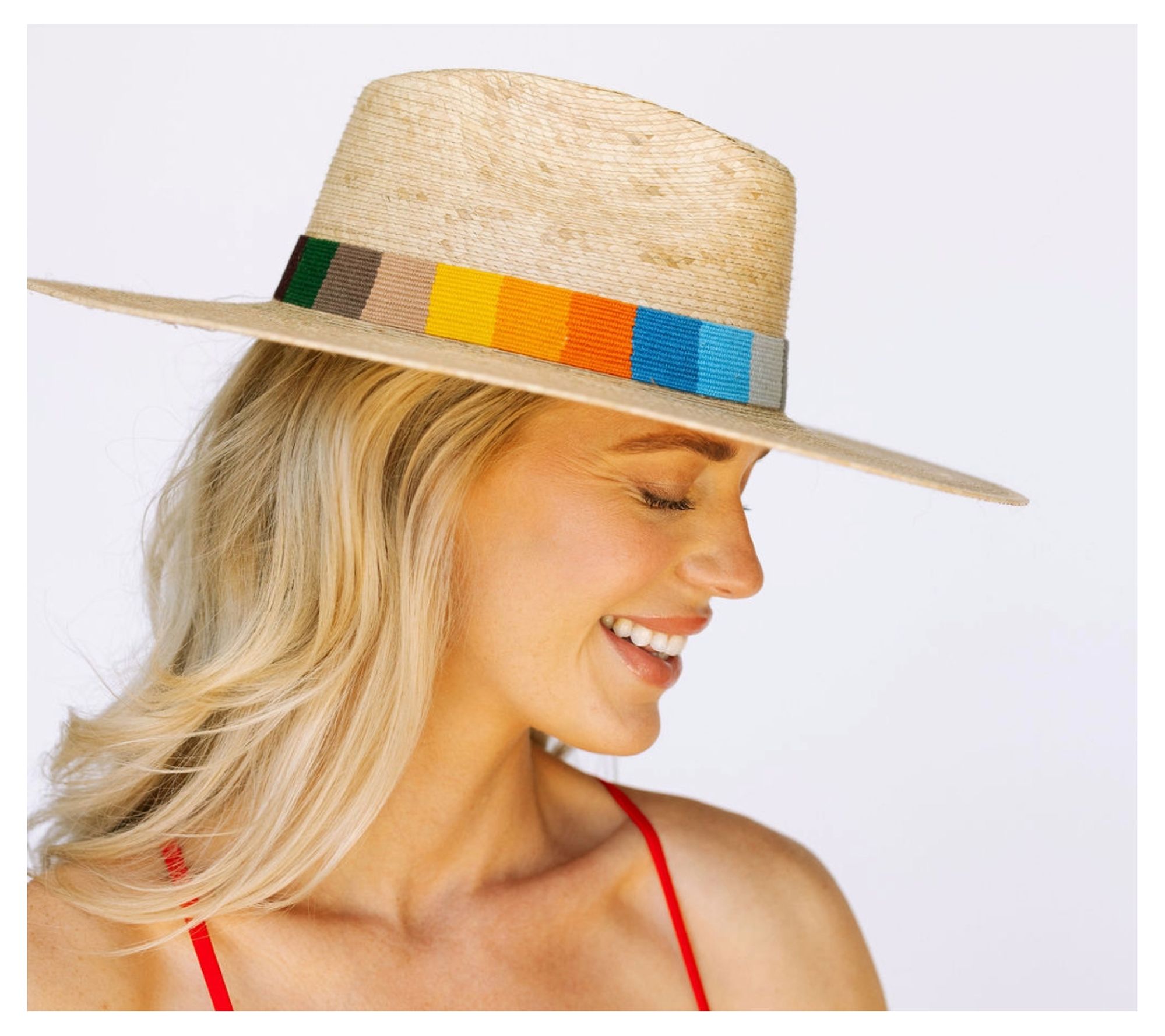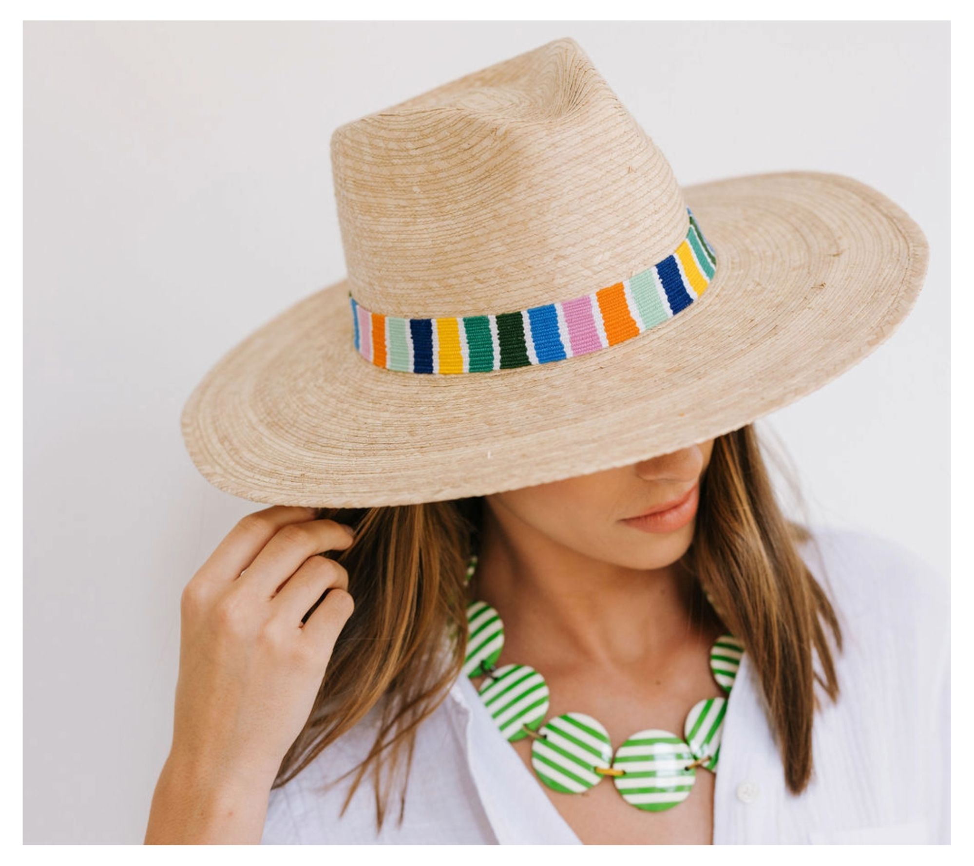 Elevate your warm-weather style with this chic striped cotton band palm hat. Perfect for a sunny spring day or a beach outing, this hat offers both comfort and a touch of effortless elegance. From Sunshine Tienda.