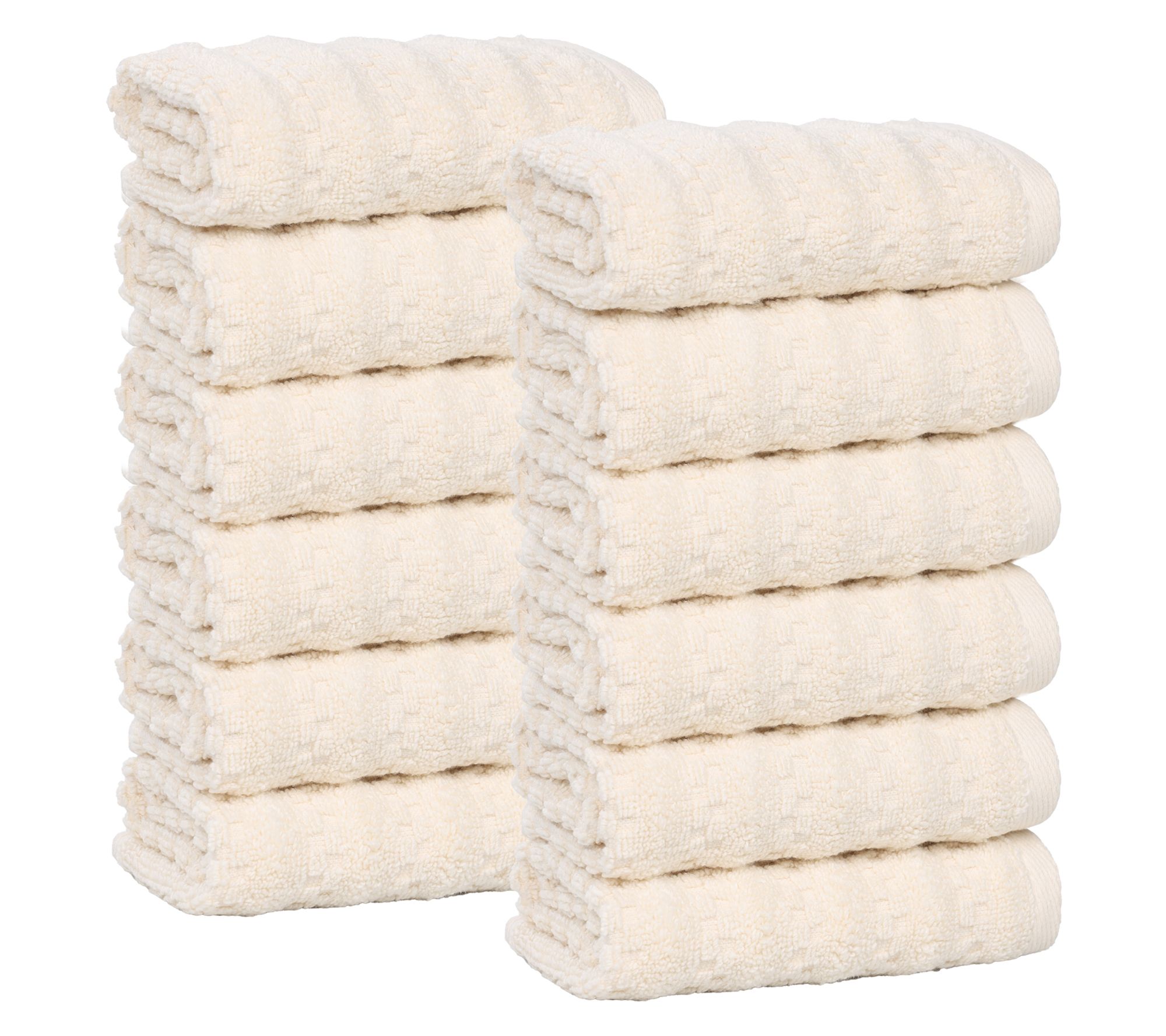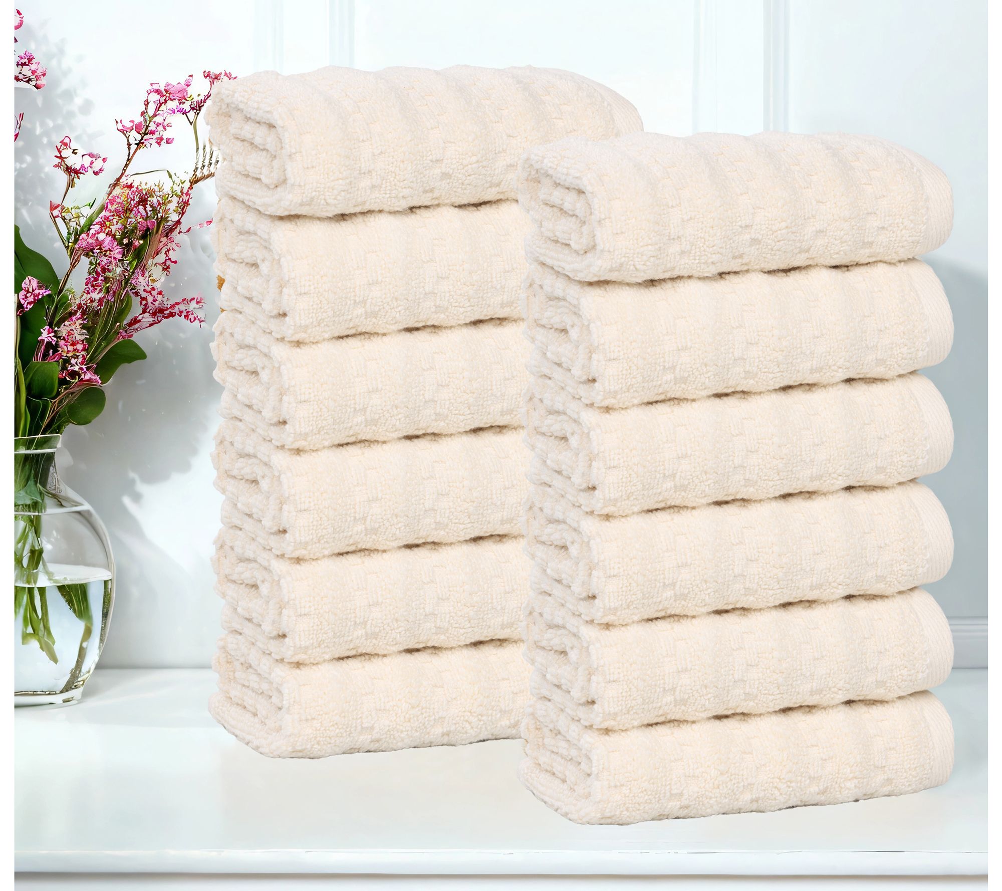 Elevate your bathroom experience with this luxurious 12-piece face towel set, crafted to bring a touch of spa-like elegance to your daily routine. These towels are incredibly soft, helping you dry off quickly and comfortably. The solid color with waffle textured stripes will effortlessly complement any bathroom decor. From Superior.
