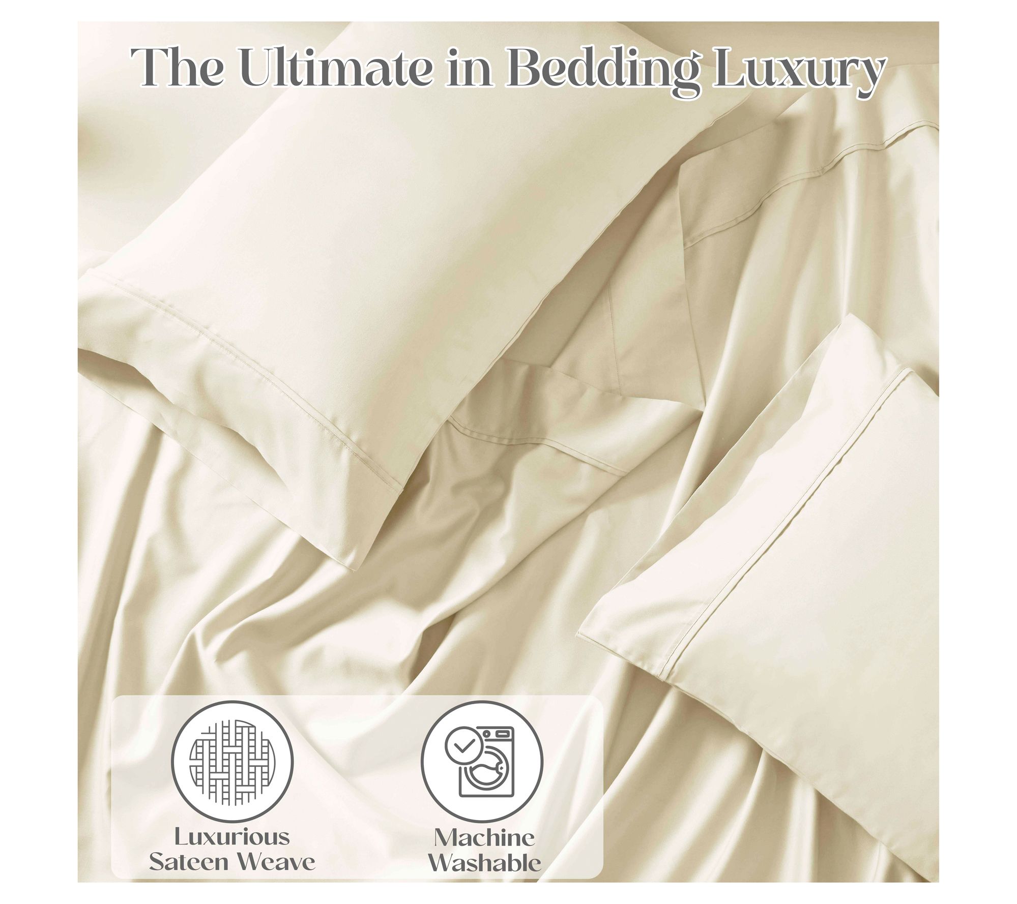 Cozy evenings and restful mornings start with these buttery-smooth sheets, boasting a gentle sateen finish and subtle shimmer. The deep pocket fitted sheet stays snug, while the matching pillowcase ties your bed together in polished comfort -- just right for everyday luxury. From Superior.