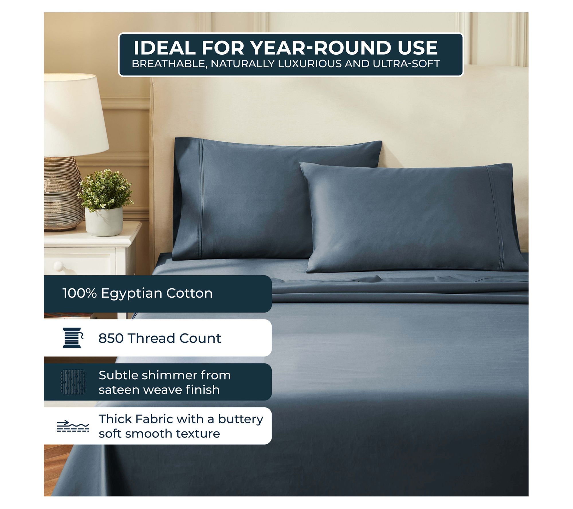 • 100% Egyptian cotton; 850 thread count