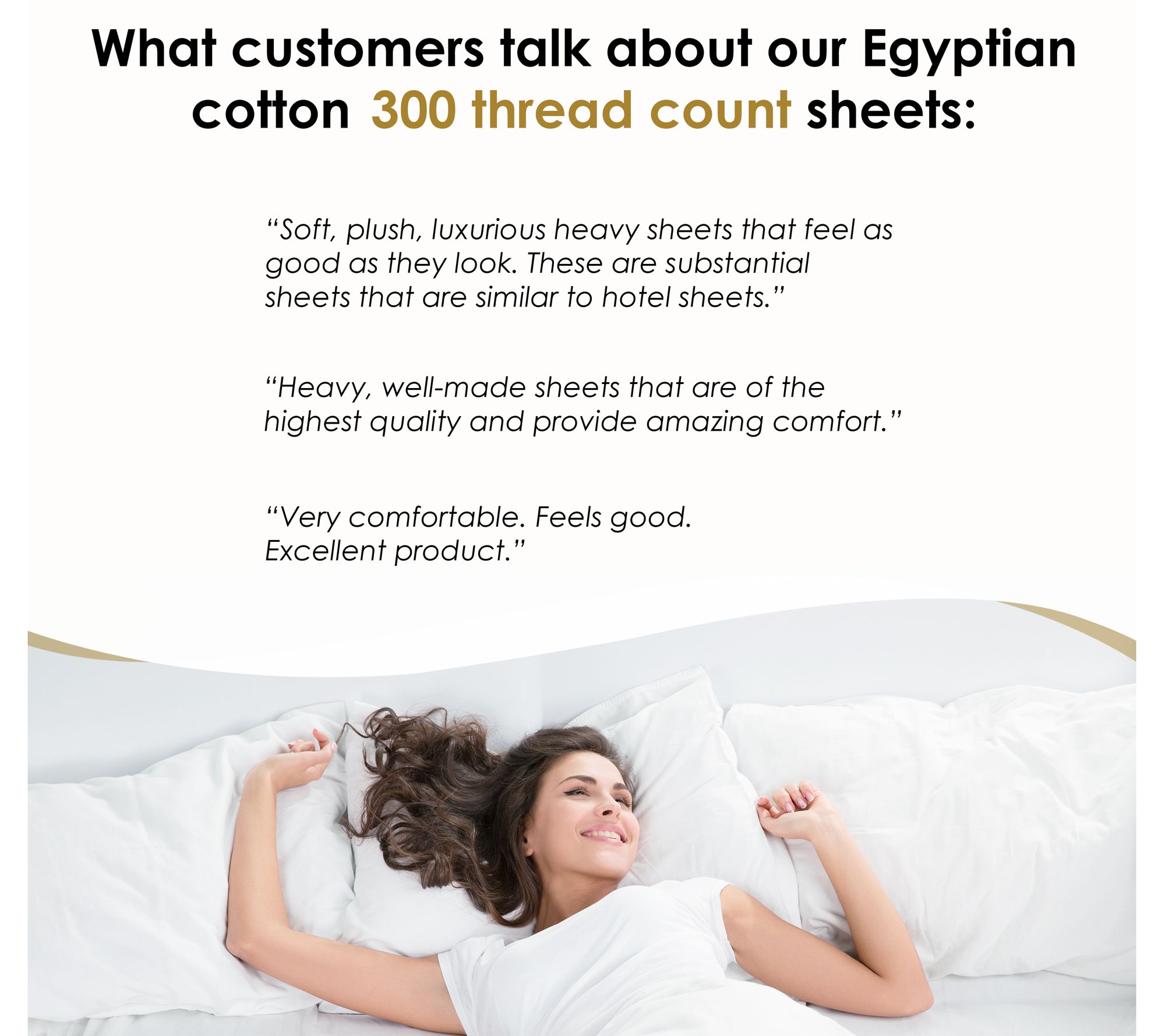 • 50% Egyptian cotton, 50% long staple combed cotton; 300 thread count