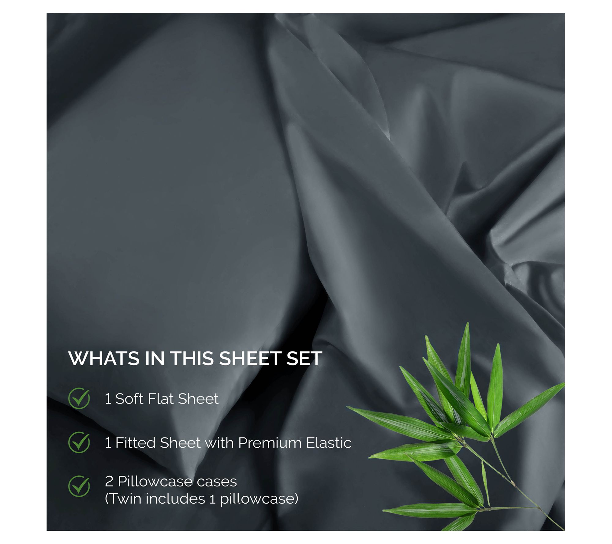 • Includes flat sheet, fitted sheet, and two pillowcases