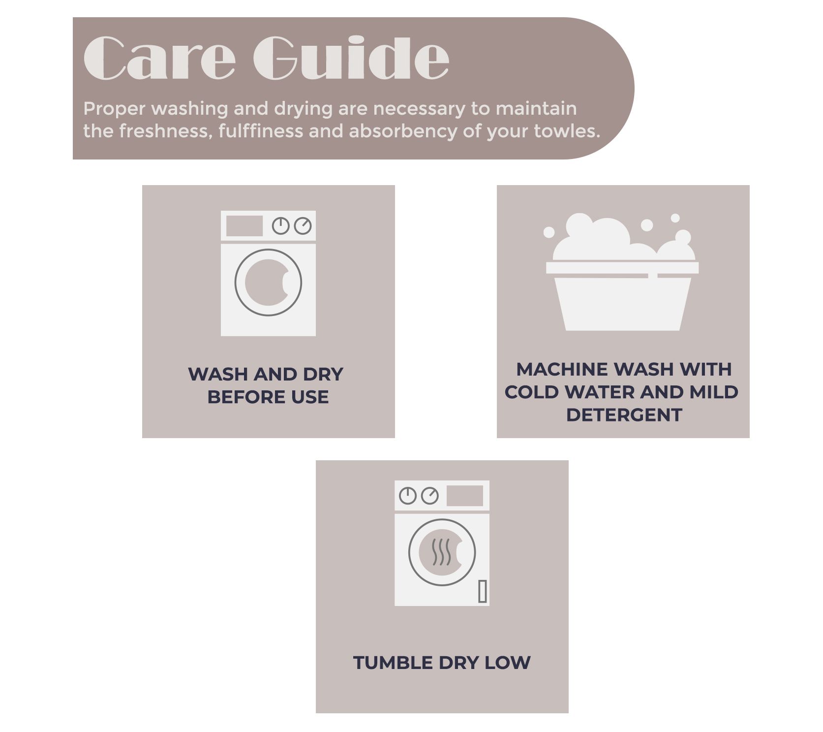 • Includes face towel, hand towel, and bath towel