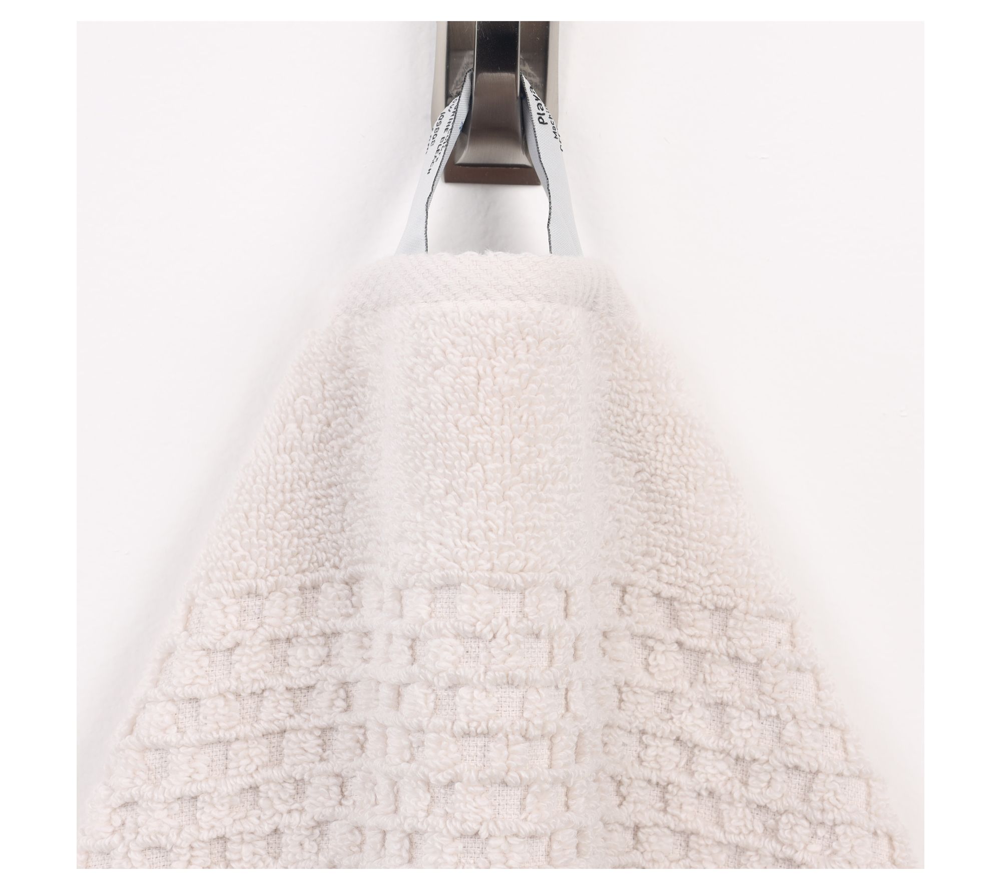 • Secure hemmed edges; wide waffle-textured stripes