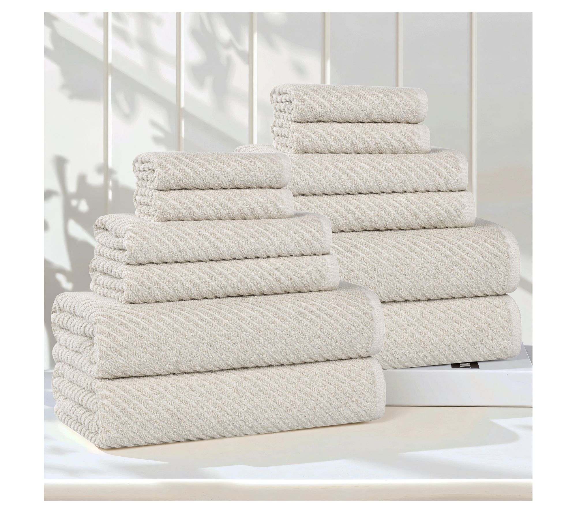 Elevate your bathroom's style and functionality with this Amelia 12-piece towel set. Crafted from a luxurious cotton-viscose blend, each towel offers a modern striped pattern and soft feel. From Superior.