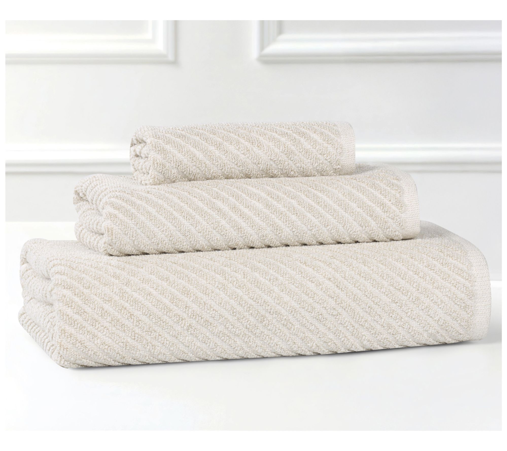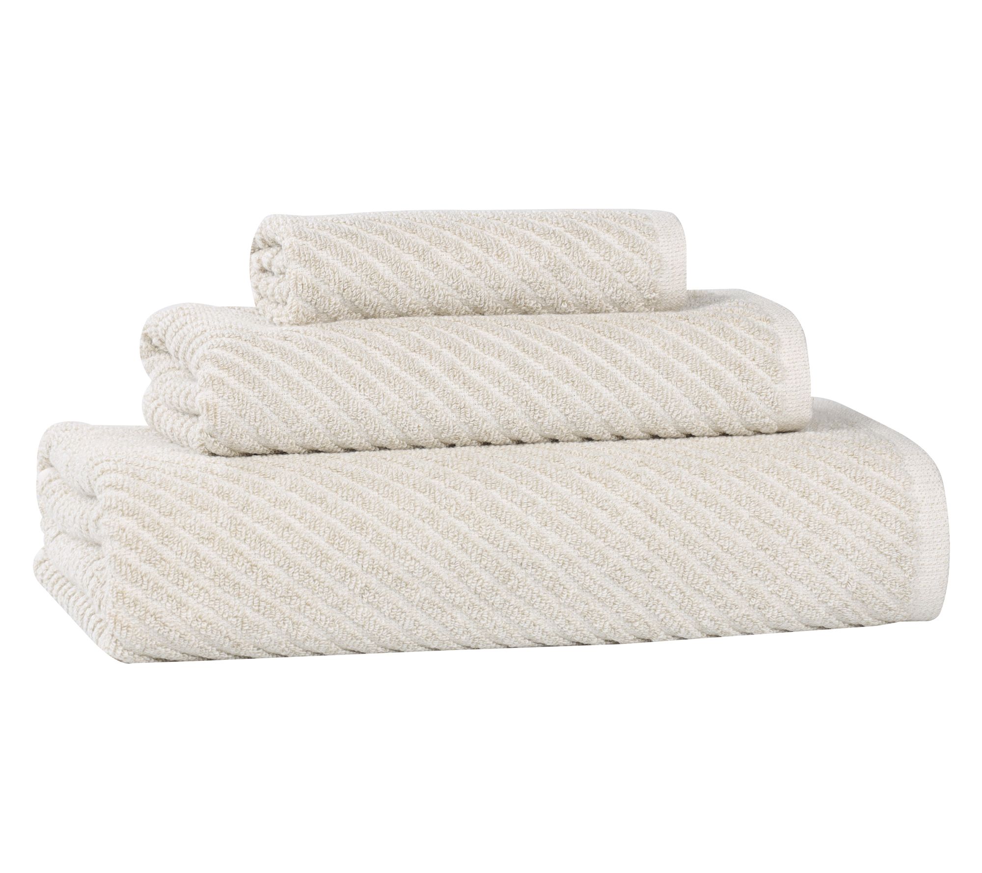 Elevate your bathroom decor with this Superior Amelia towel set. With an eye-catching diagonal striped pattern, these towels not only add a chic touch but are also delightfully tactile. From Superior.