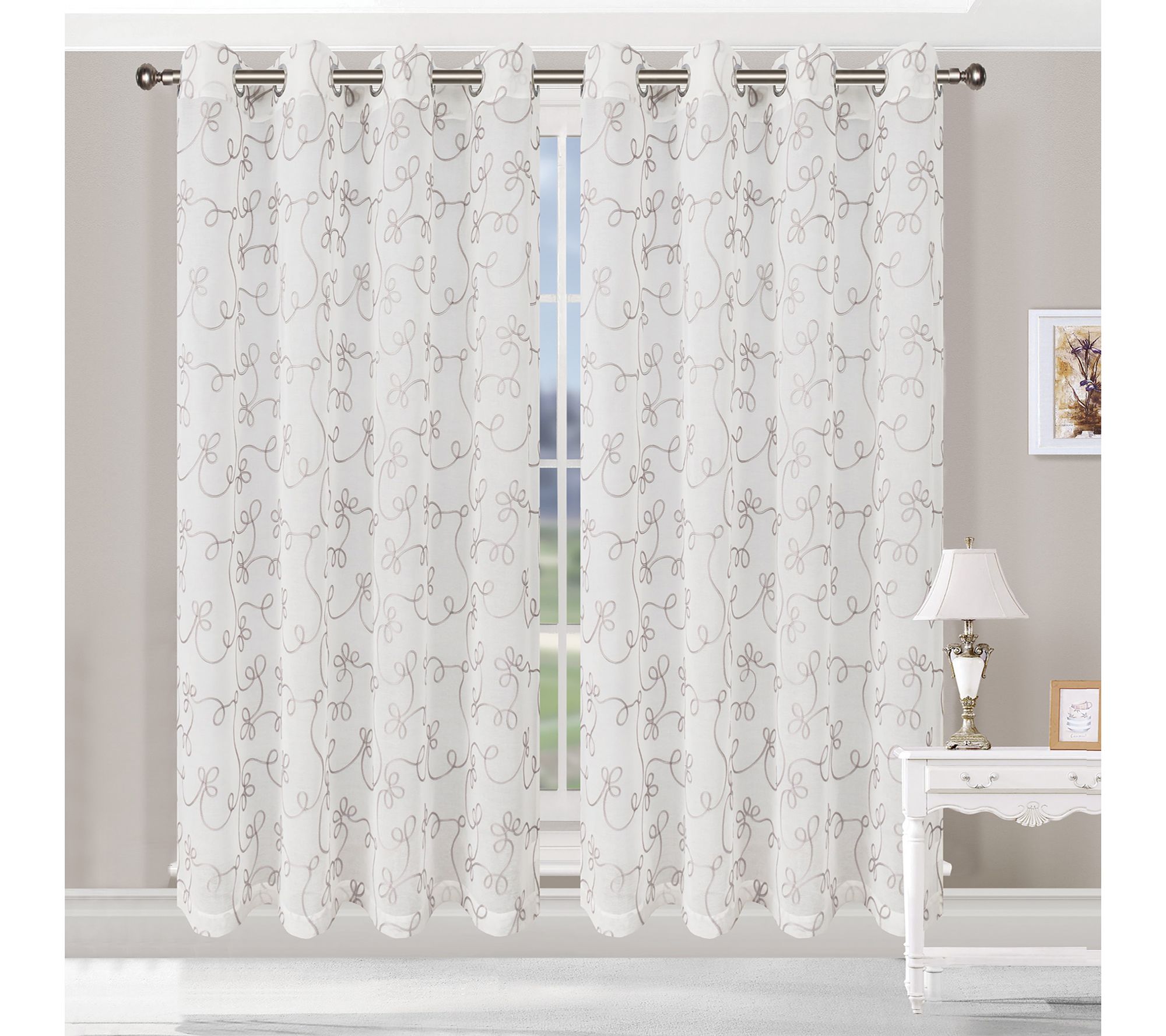 Superior Bohemian Scroll Sheer Curtain Panel Set, 42" x 84"