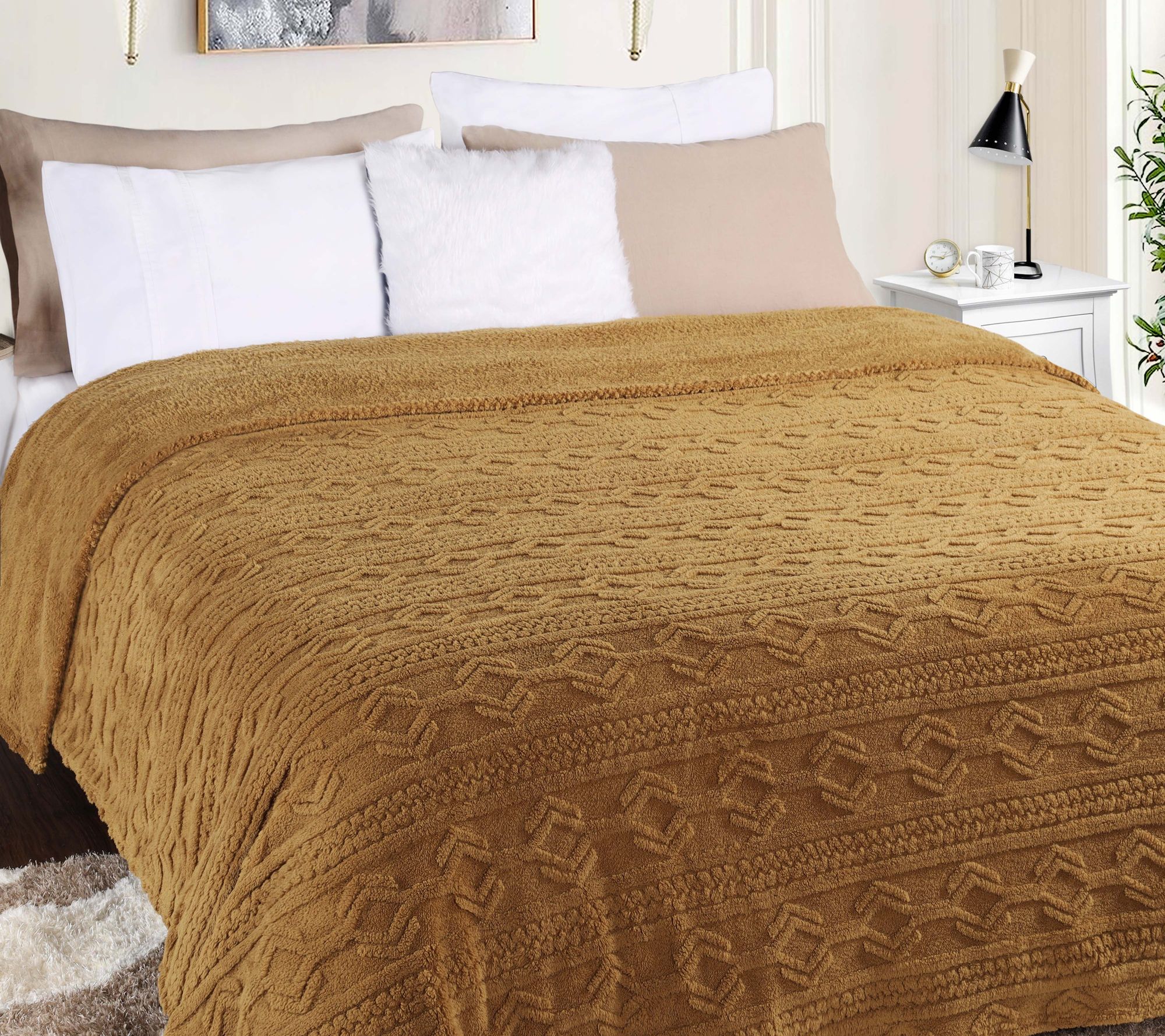Superior Boho Knit Jacquard Fleece Fluffy Blanket - Twin