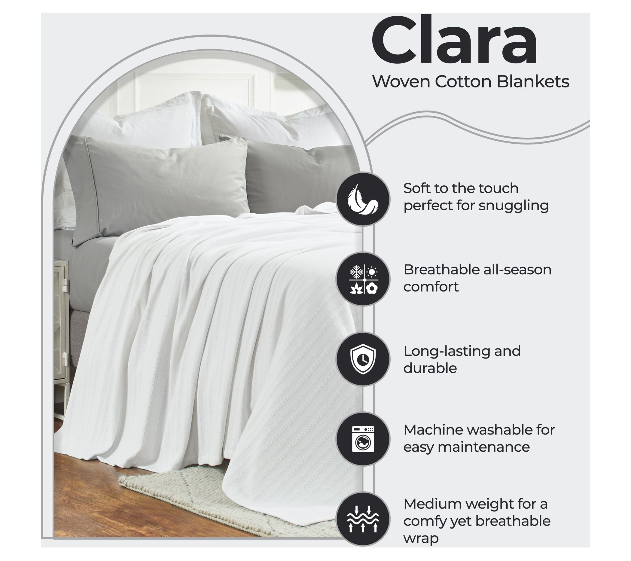 Drift off into a cozy slumber wrapped in the Clara blanket. Crafted from naturally soft 100% cotton, this lightweight and breathable blanket keeps you comfy and warm while you sleep or lounge. Featuring a raised jacquard weave design and horizontal striped pattern, it instantly ties together your home decor style. From Superior.