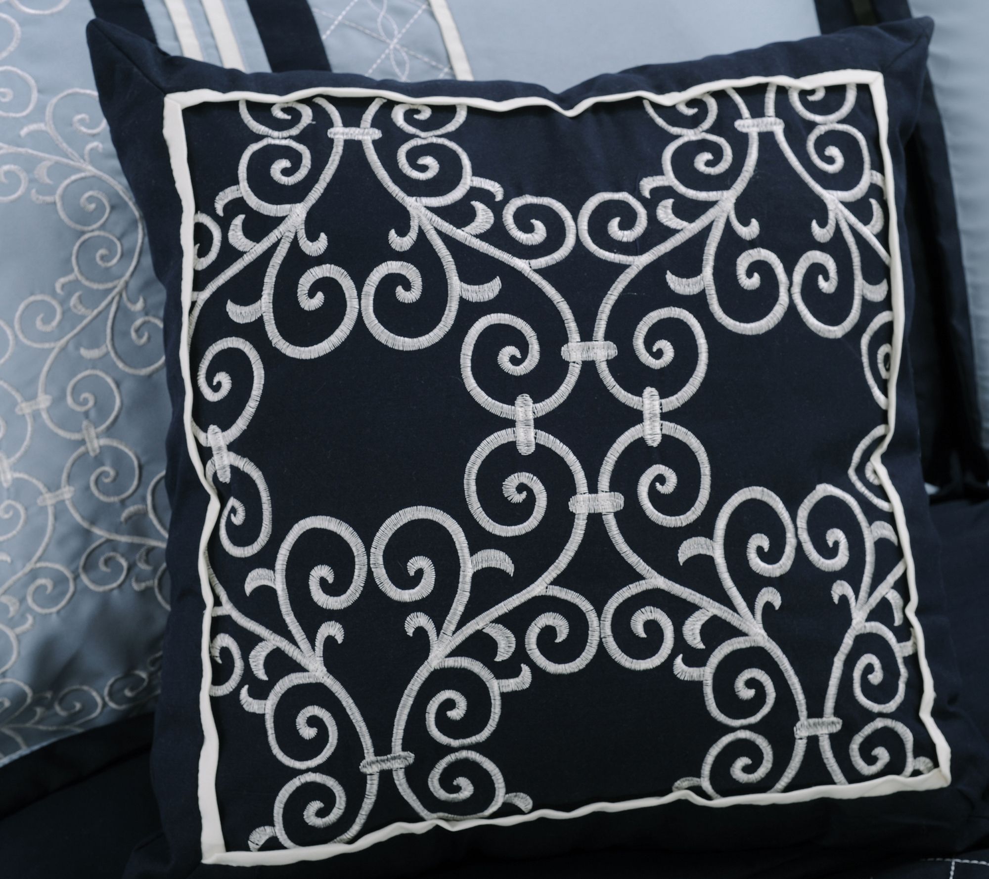 • Includes comforter, two Euro shams, two pillow shams, bed skirt, square pillow, and breakfast pillow
