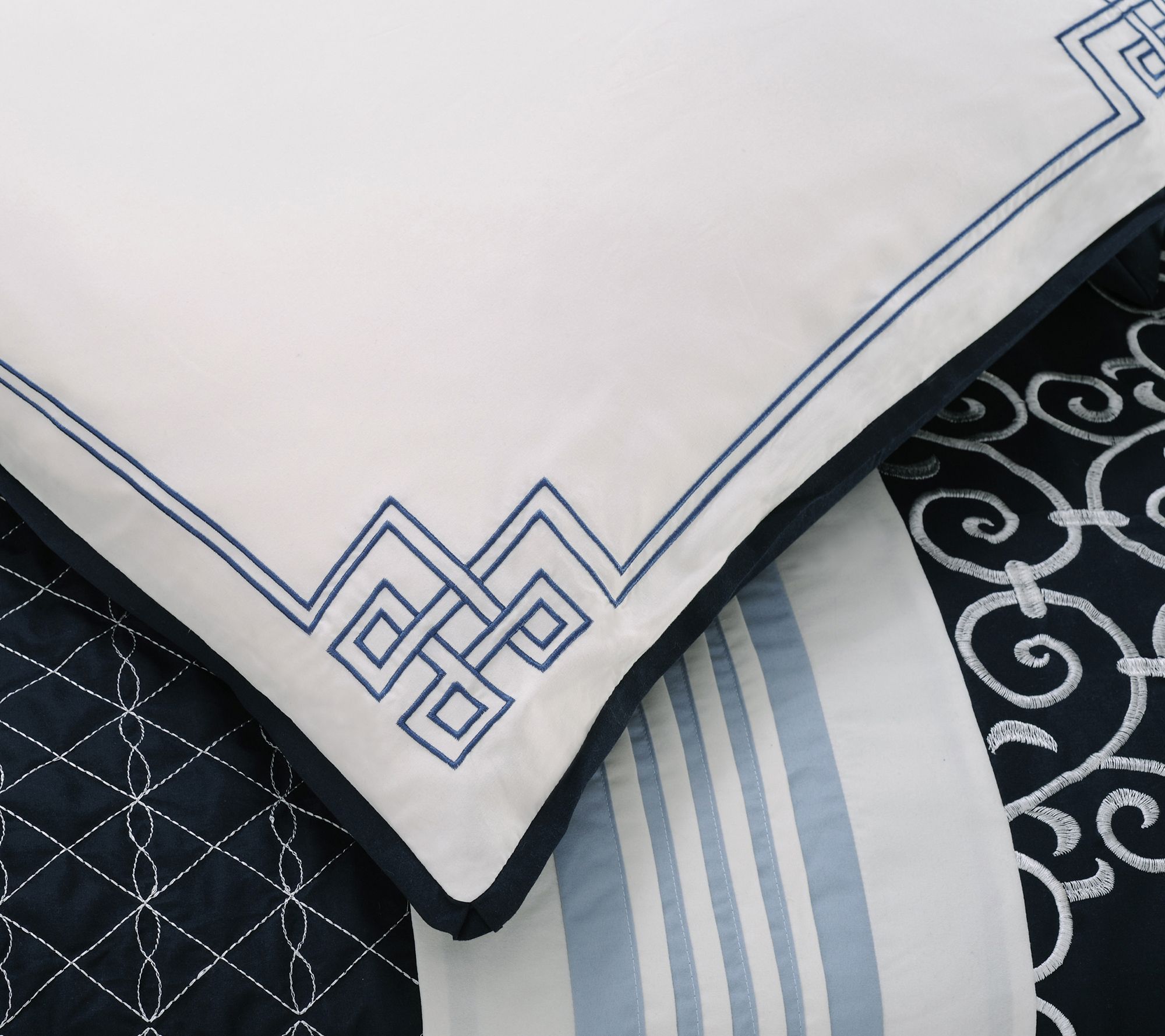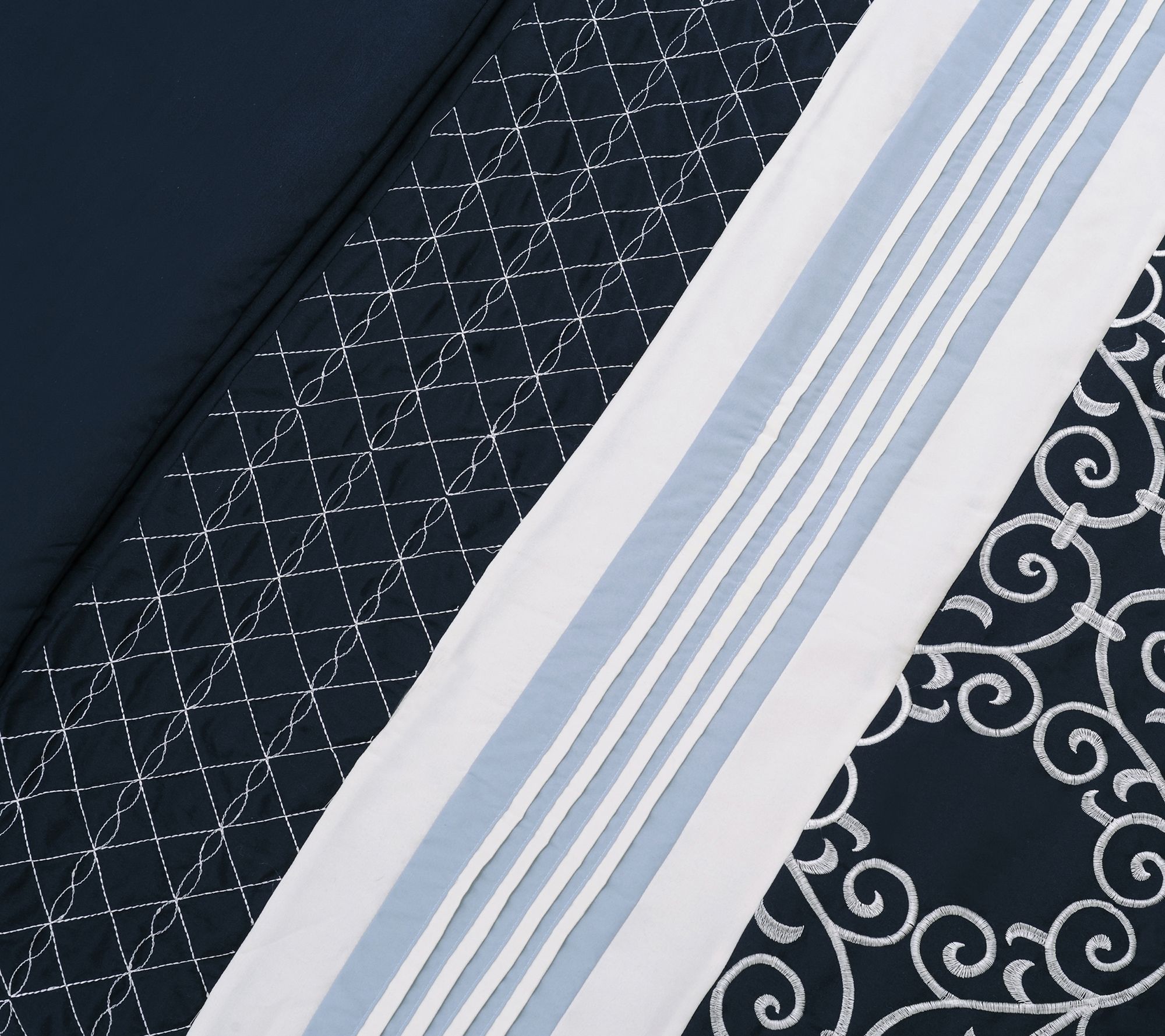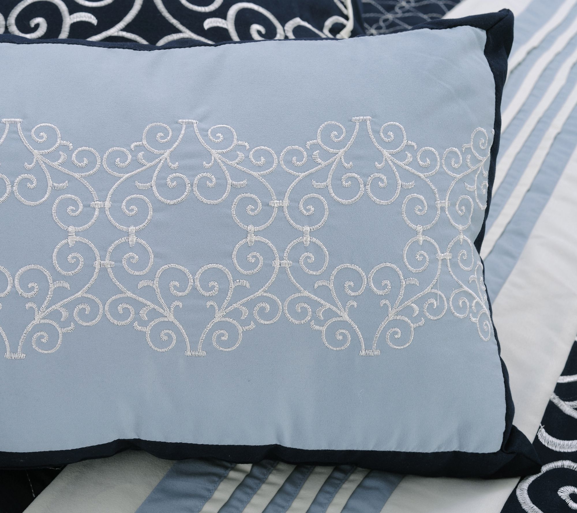 Stripes, swirls, and embroidery give this Clarissa bedding set its sophisticated good looks while soft microfiber construction keeps you cozy and comfy. From Superior.