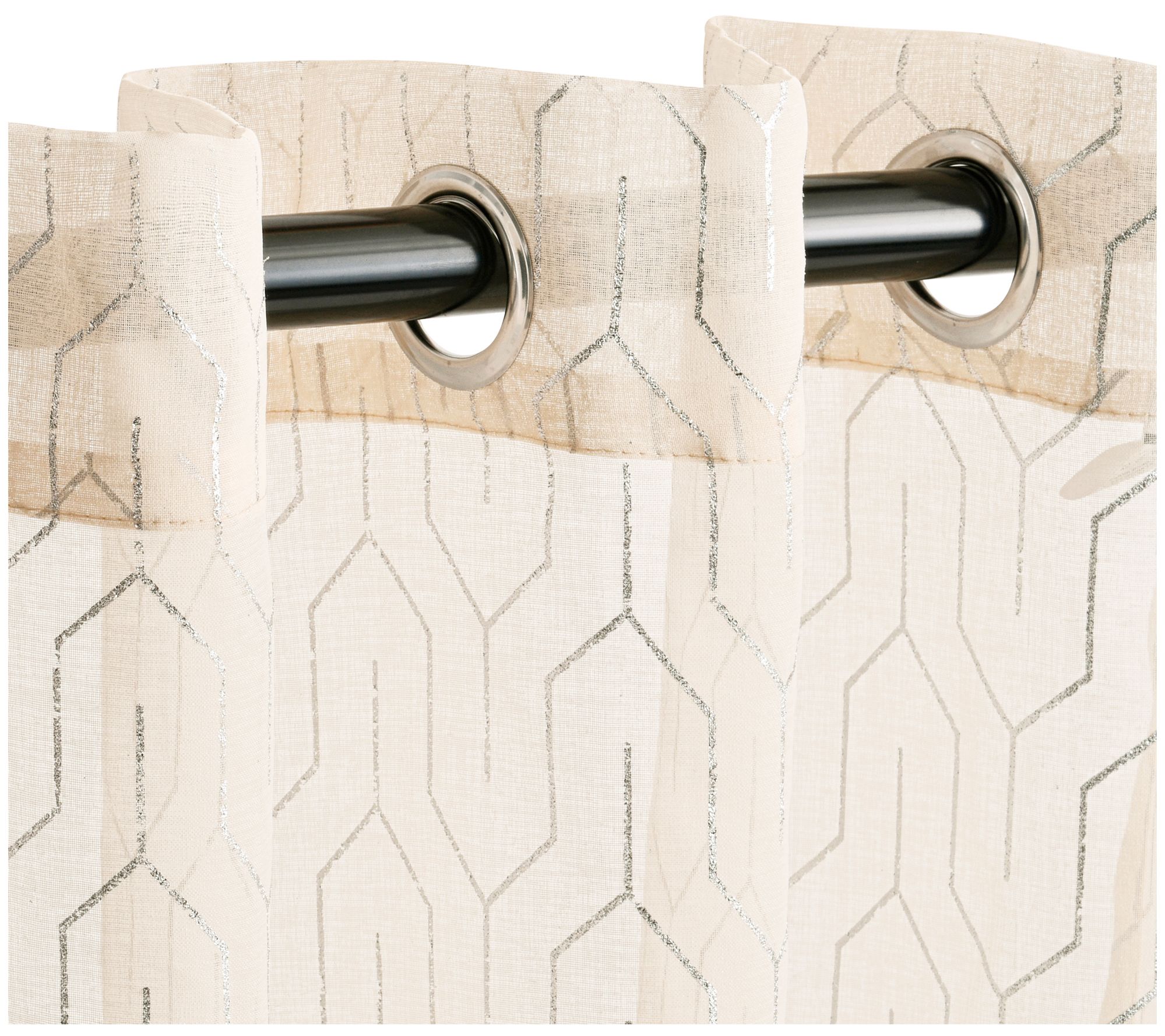 Add a touch of sparkle to your windows with this Cormac printed sheer curtain set. This charming pair gives your interior a glamorous look with their silvery geometric trellis pattern. These transparent panels feature a stainless grommet header, making them easy to hang and giving them a subtle glisten. Add a soft highlight to your home while still allowing natural light to stream through and brighten your favorite space. From Superior.