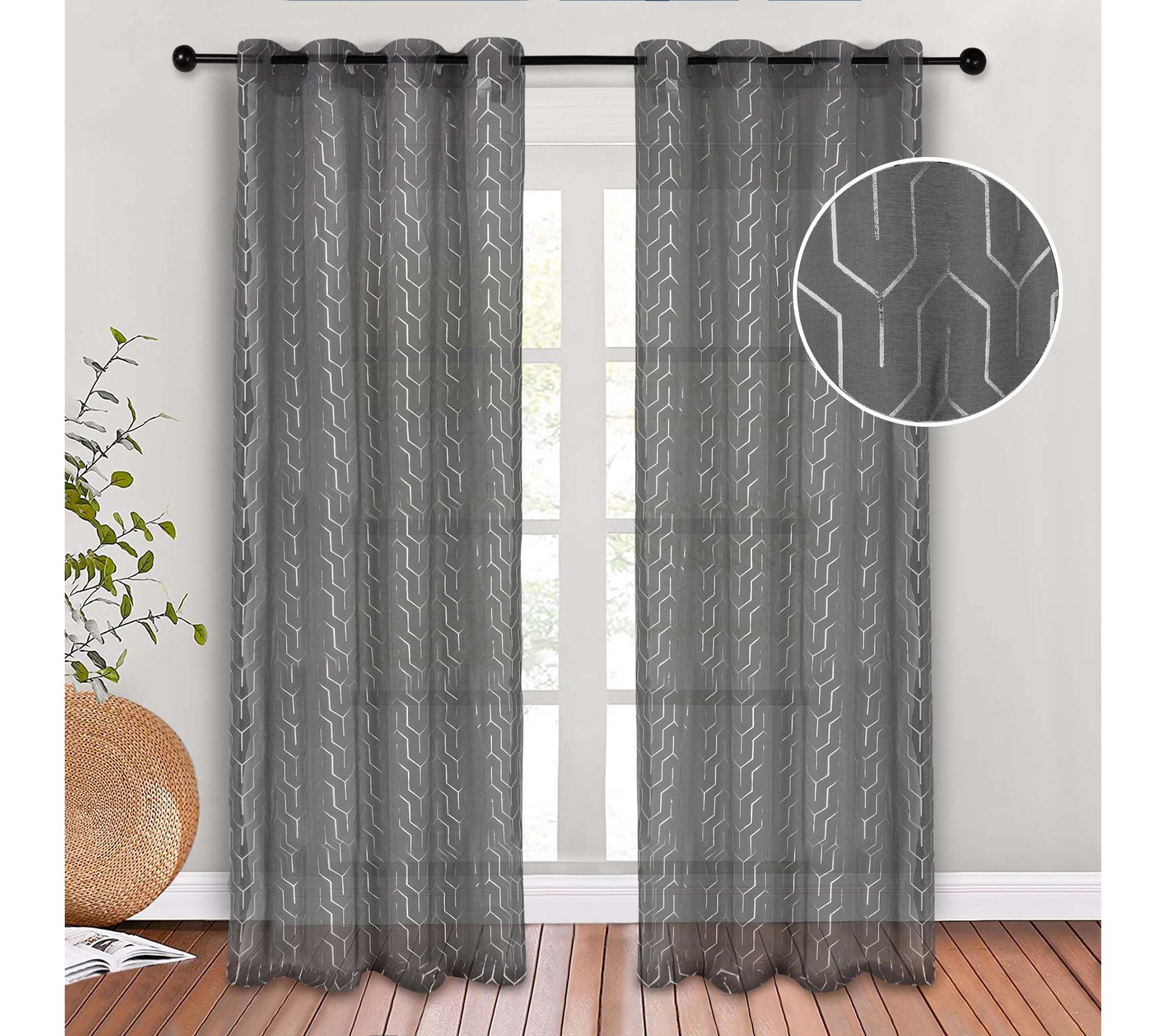 Add a touch of sparkle to your windows with this Cormac printed sheer curtain set. This charming pair gives your interior a glamorous look with their silvery geometric trellis pattern. These transparent panels feature a stainless grommet header, making them easy to hang and giving them a subtle glisten. Add a soft highlight to your home while still allowing natural light to stream through and brighten your favorite space. From Superior.