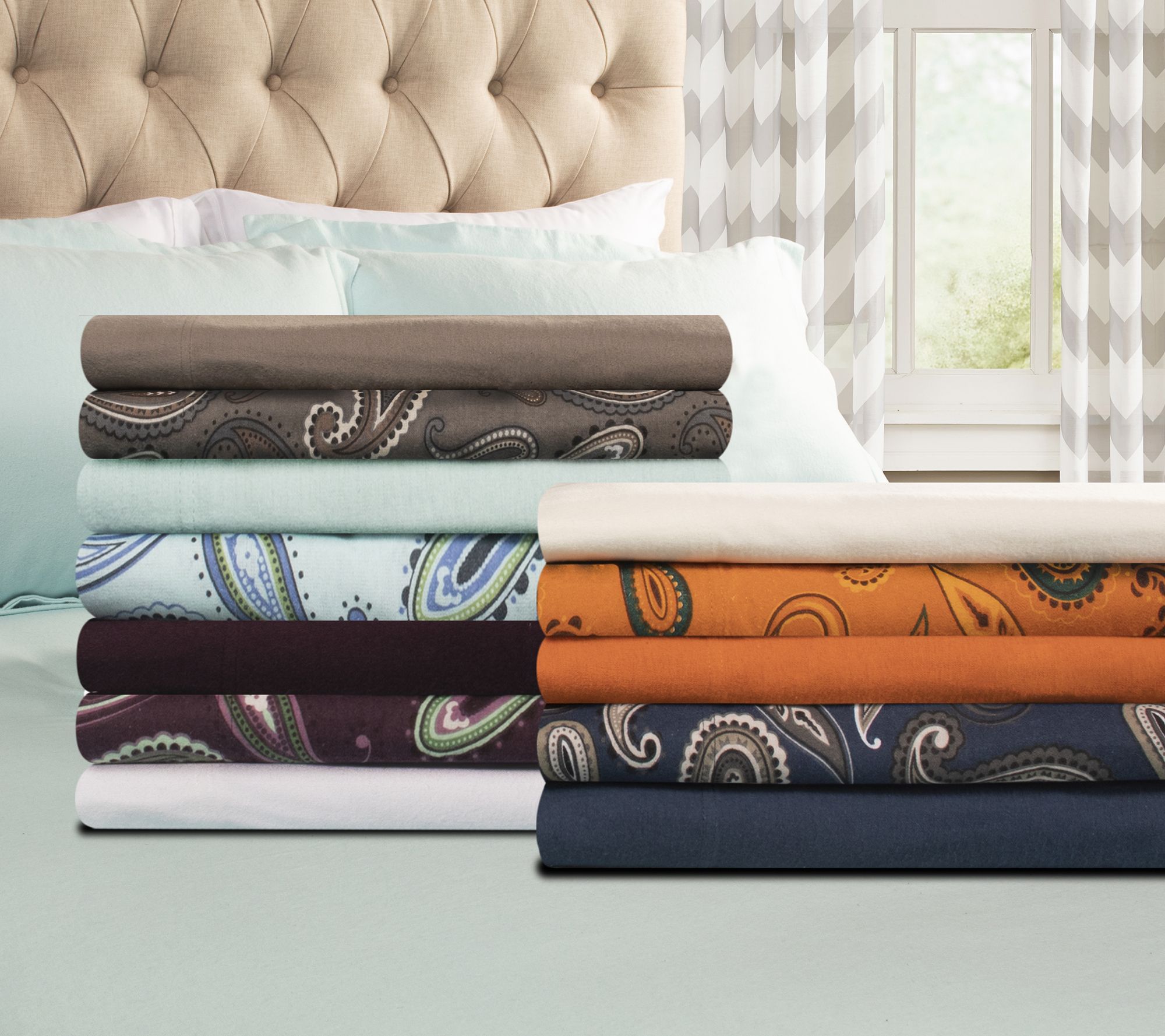 • Includes flat sheet, two fitted sheets, and two pillowcases