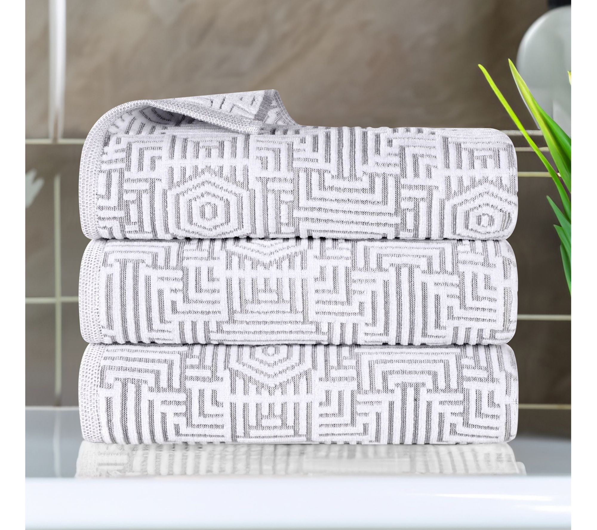 Superior Cotton Jaq Plush Soft Absorbent Bath Towel Set of 3