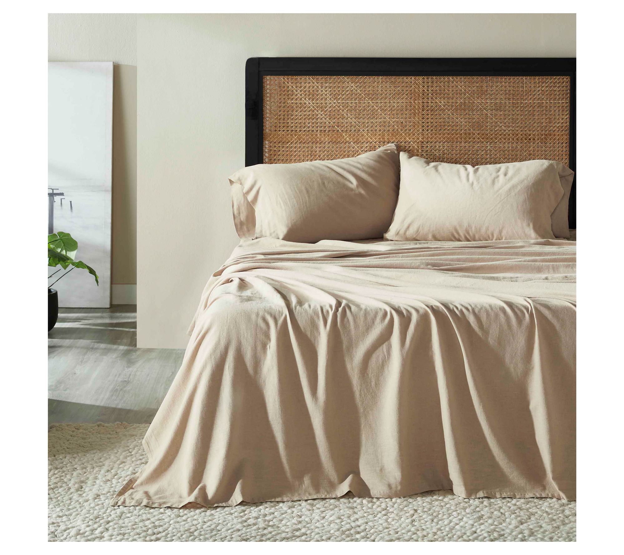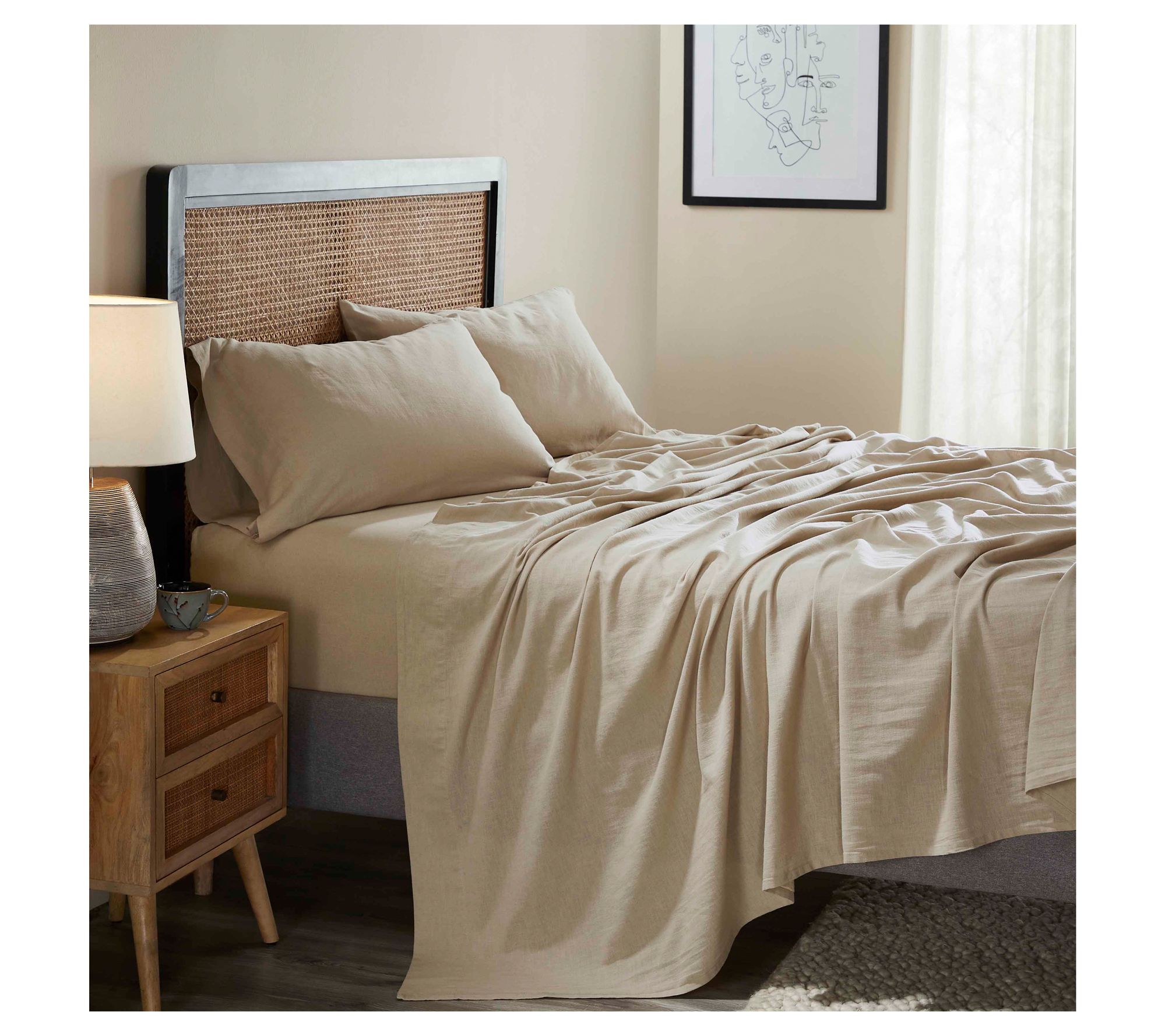 Turn your bedroom into a cozy retreat with this cotton linen blend sheet set, offering a relaxed, stylish look and soft comfort that makes winding down after a long day even more inviting. This set brings easy elegance to everyday routines and adds a touch of laid-back charm to your sleep space. From Superior.
