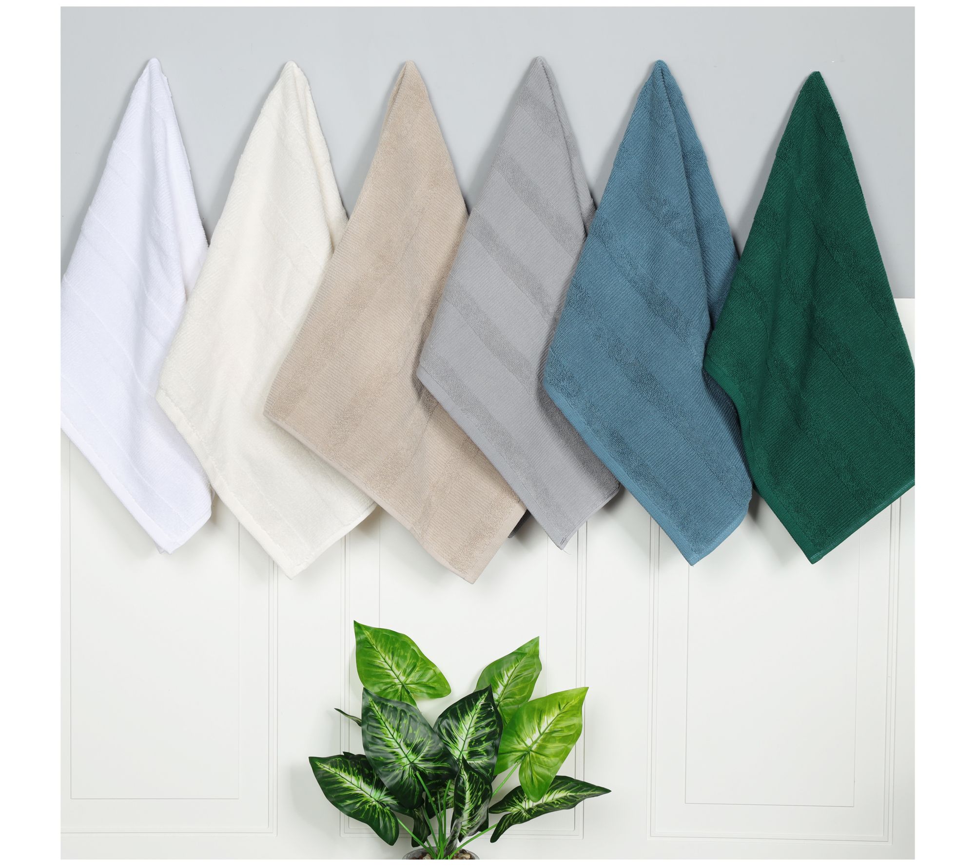 Superior Cotton Ribbed Textured Hand Towels,Set of 6