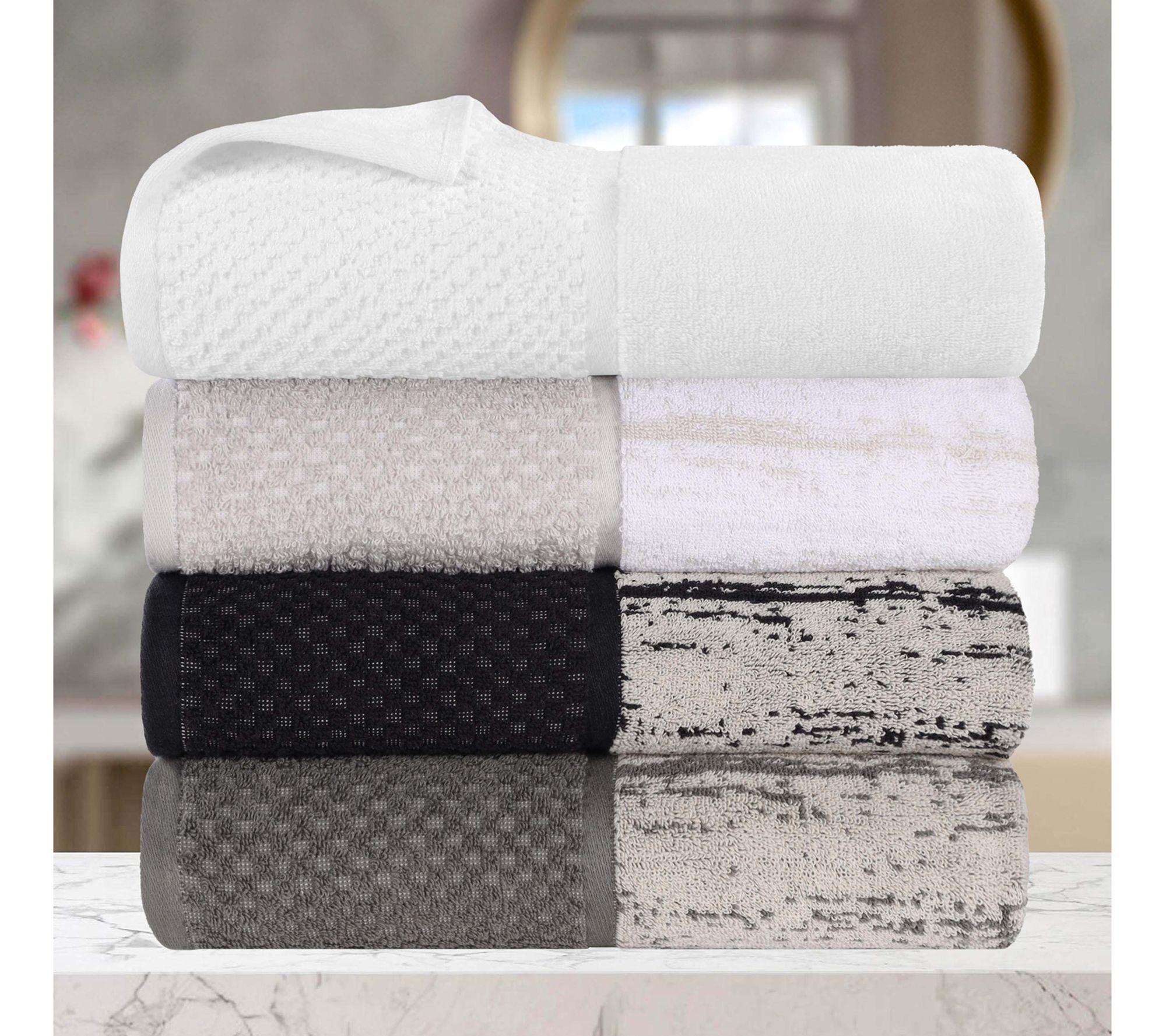 Superior Cotton Soft Absorbent Two Toned Hand Towel Set of 6