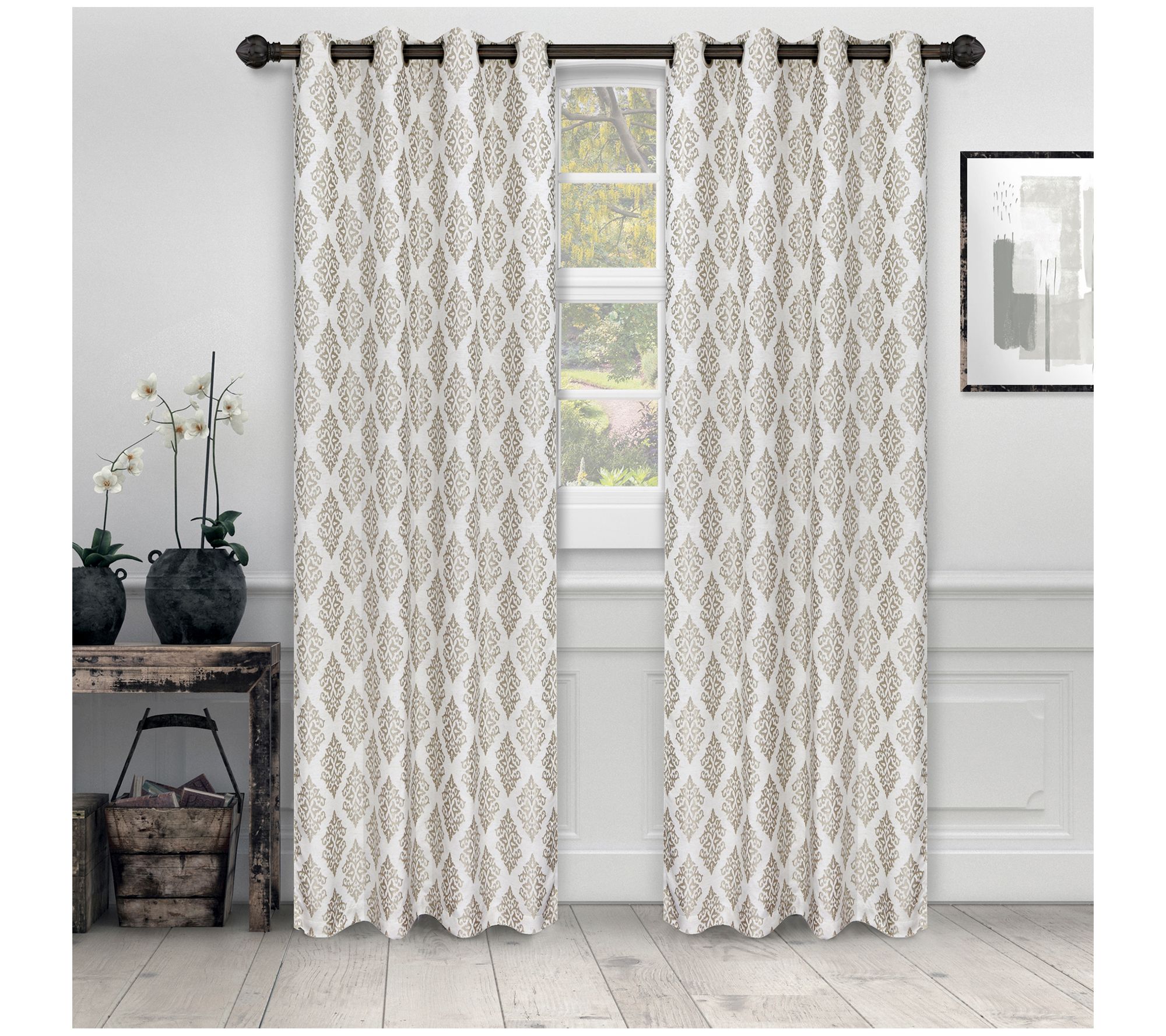 Shimmery and elegant, these Venetian Damask Jacquard grommet curtains give your space a luxurious upgrade. From Superior.