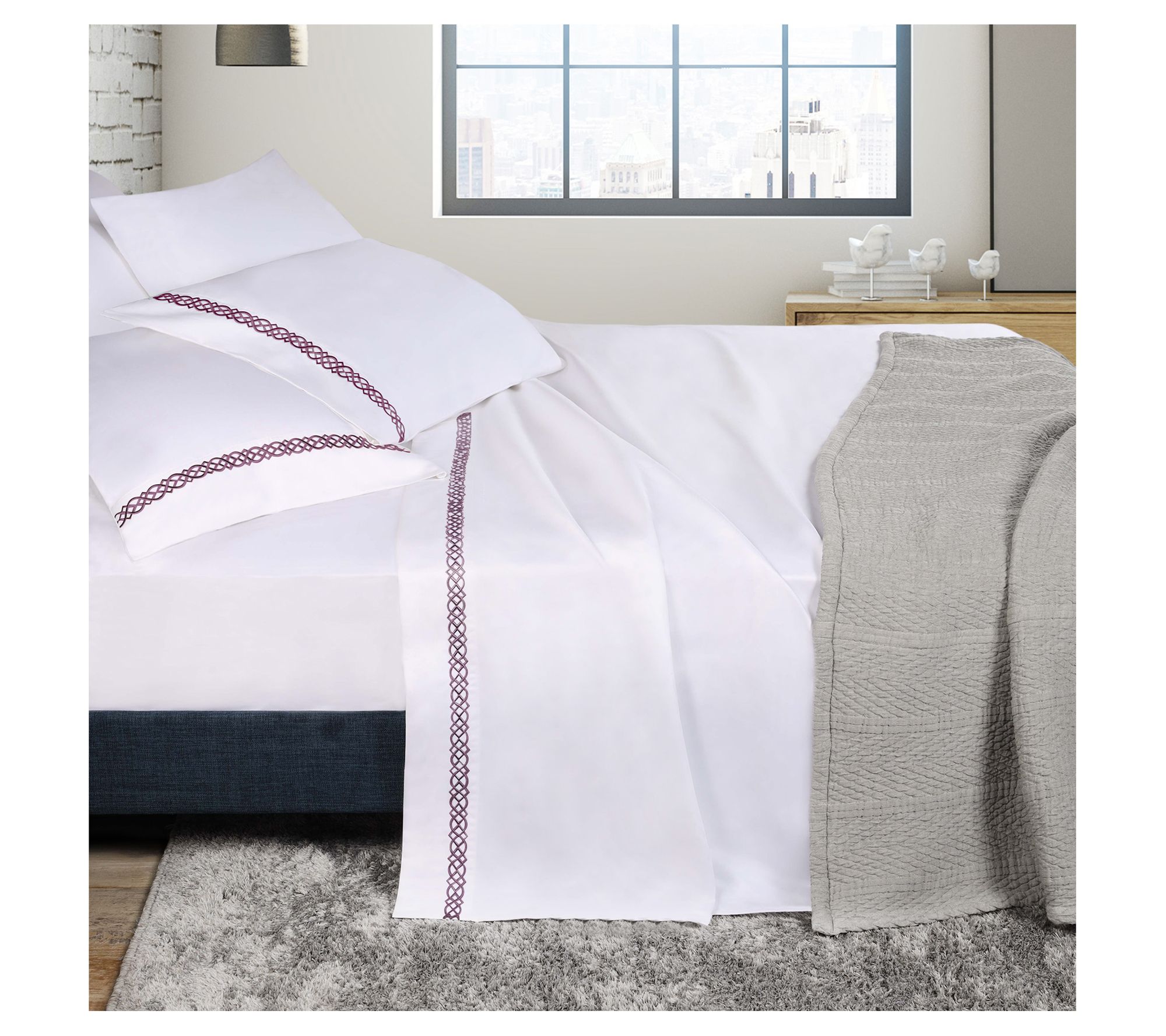 • Includes flat sheet, fitted sheet, and two pillowcases