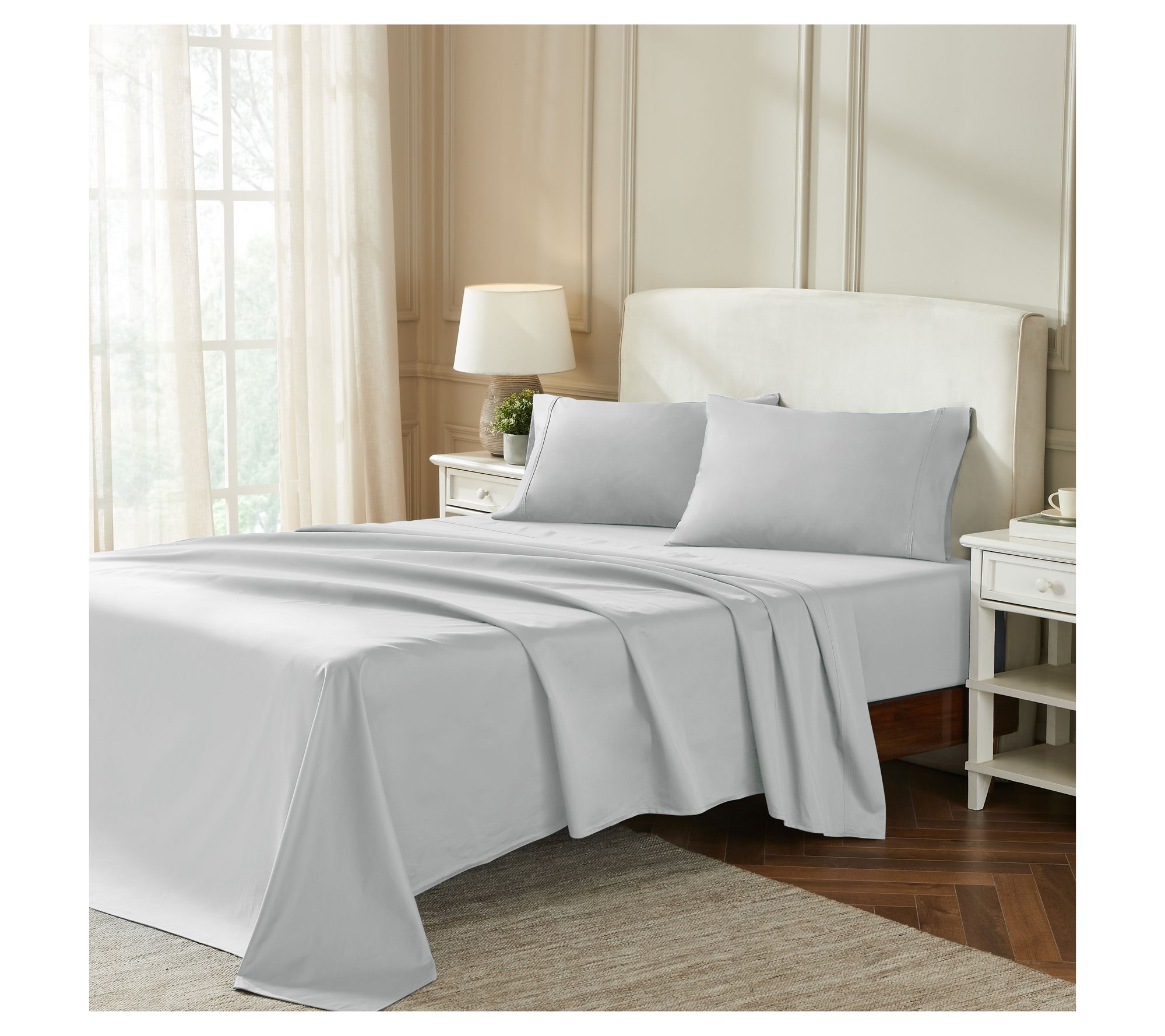 • Includes flat sheet, fitted sheet, and two pillowcases