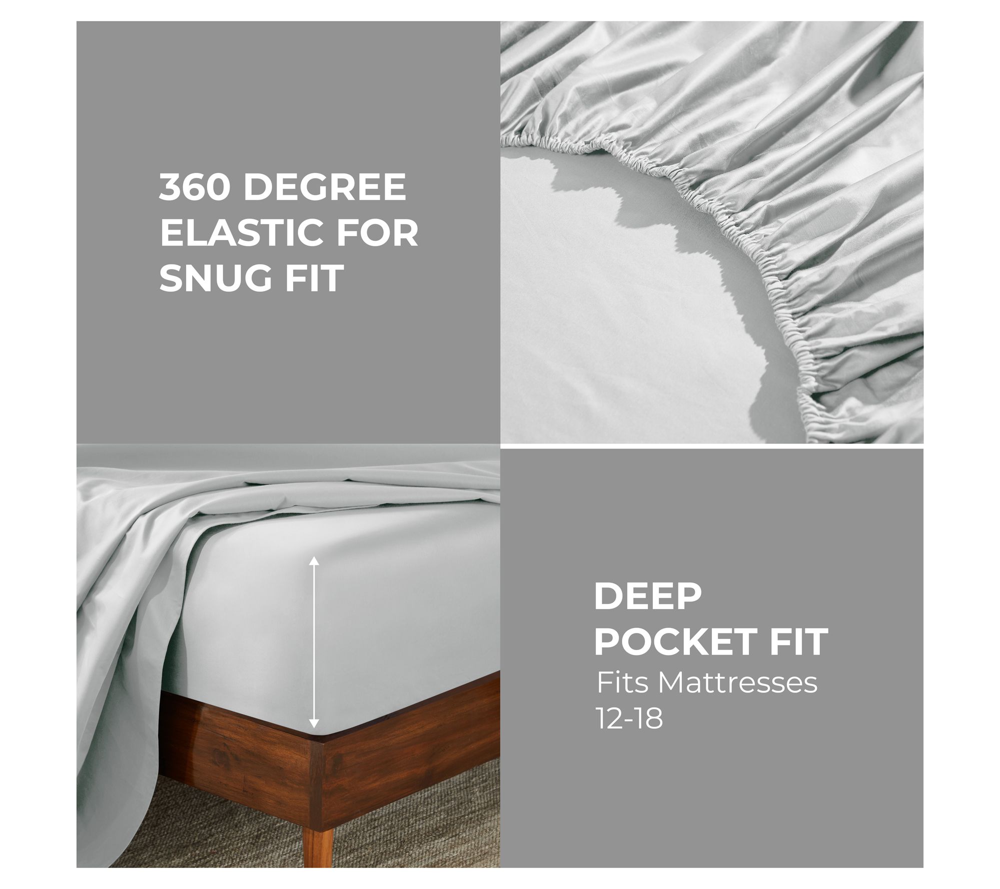 • Queen sized: Flat sheet 90" x 102"; Fitted sheet 60" x 80" with 15" pocket depth; Pillowcases 20" x 30"